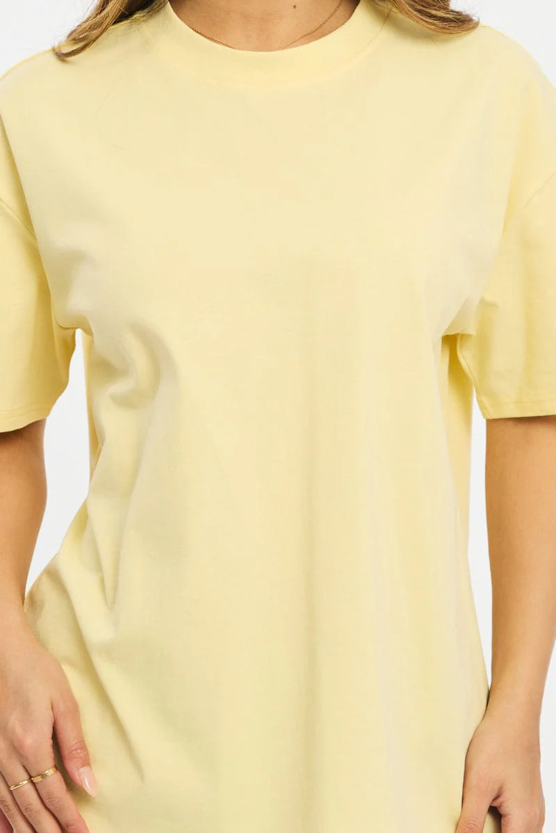 Yellow Top Short Sleeve Gathered Bust Pleated Detail