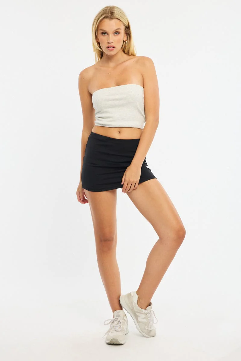 Black Mini Skort Skirt Elasticated Waist Shorts Lined