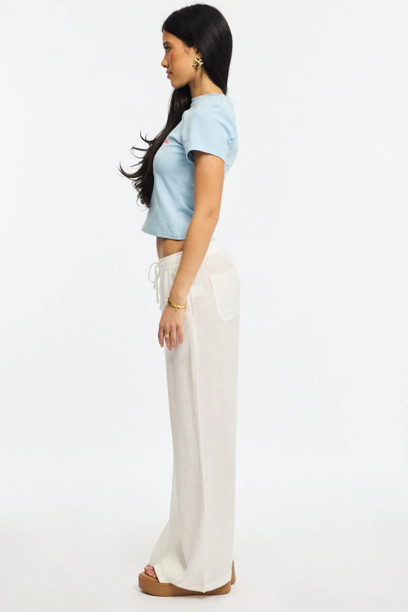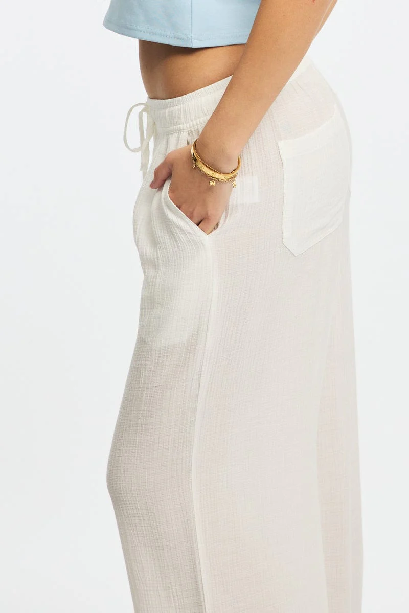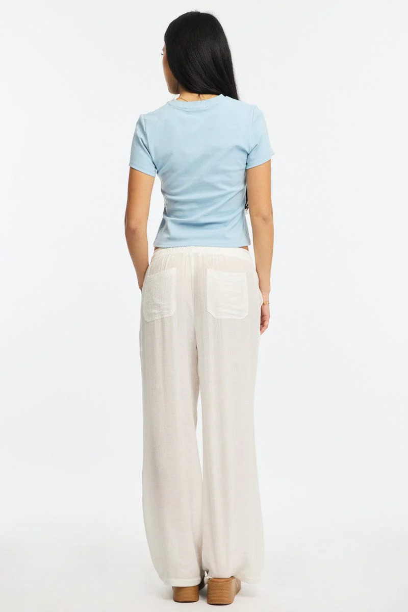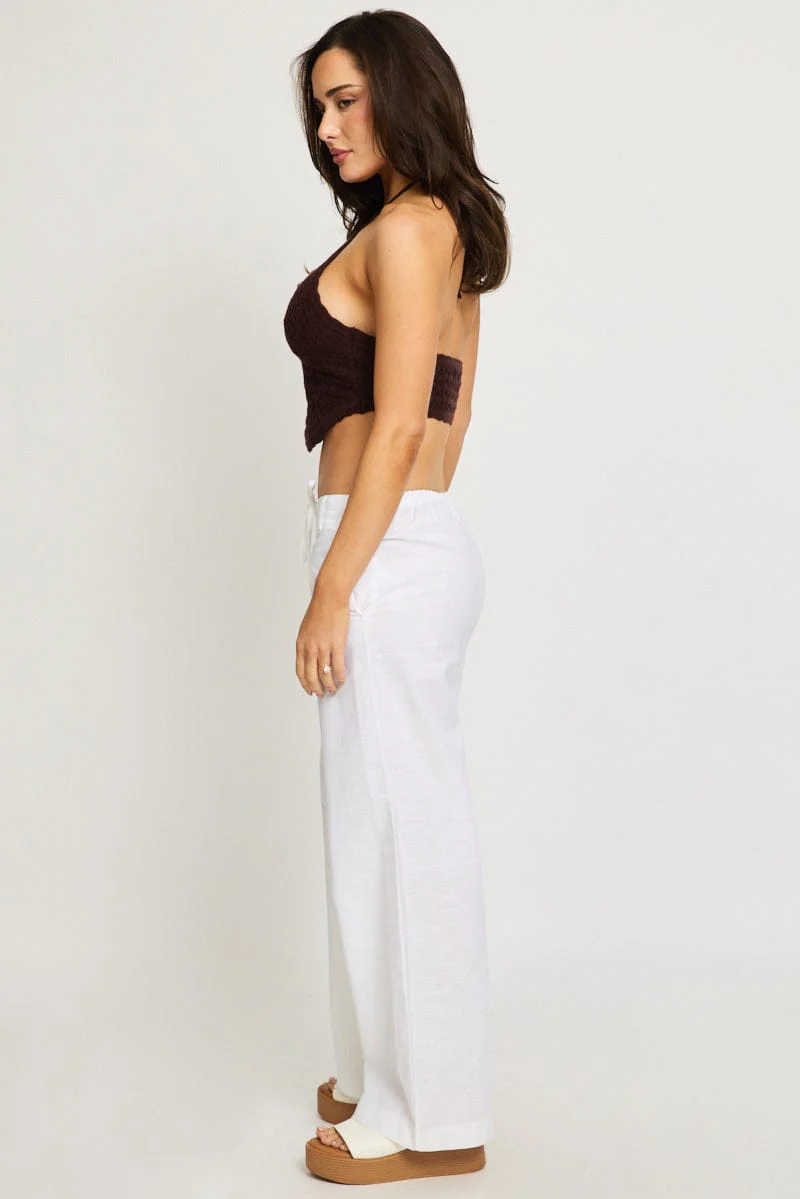 White Wide Leg Pants Waist Tie