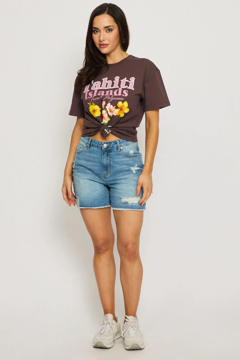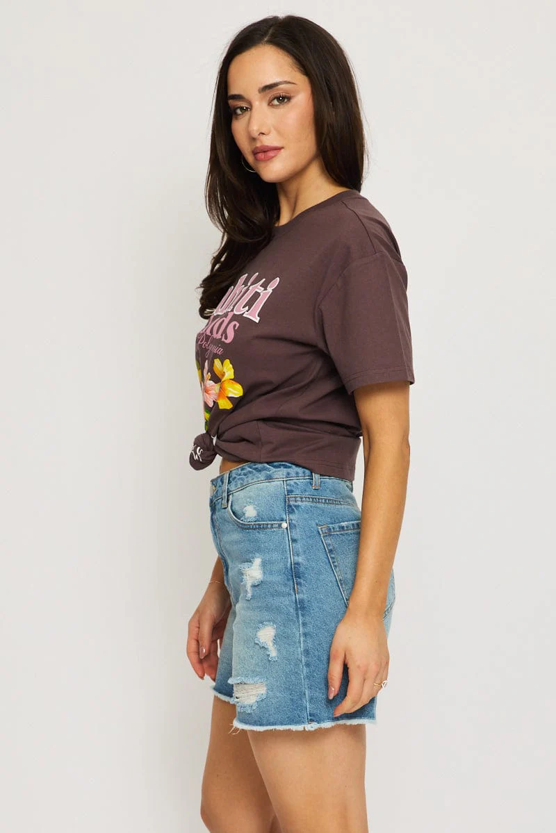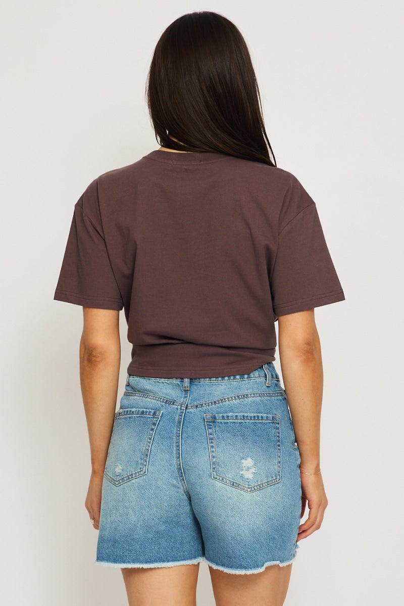 Brown Button Down Tee Short Sleeve Rib
