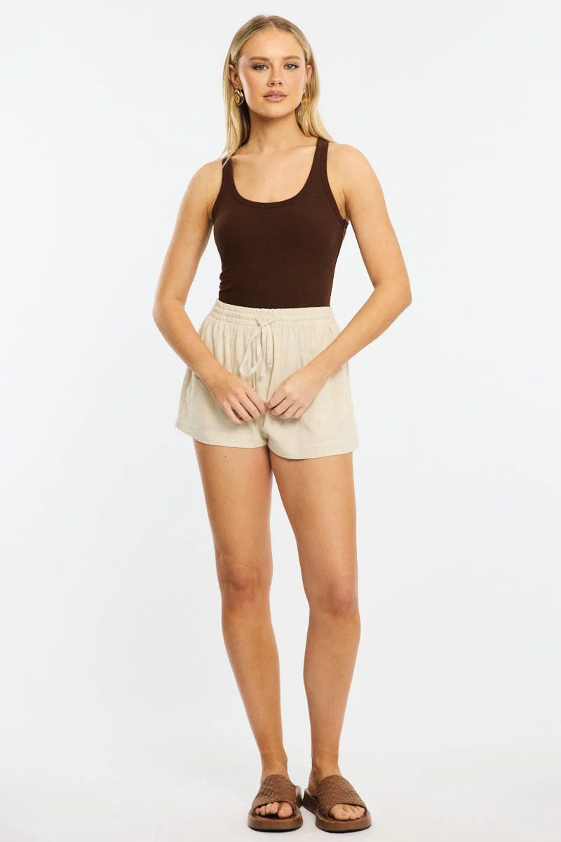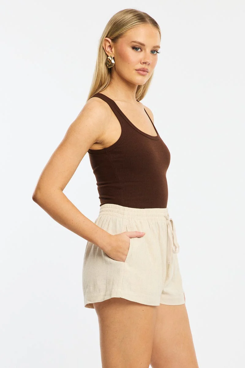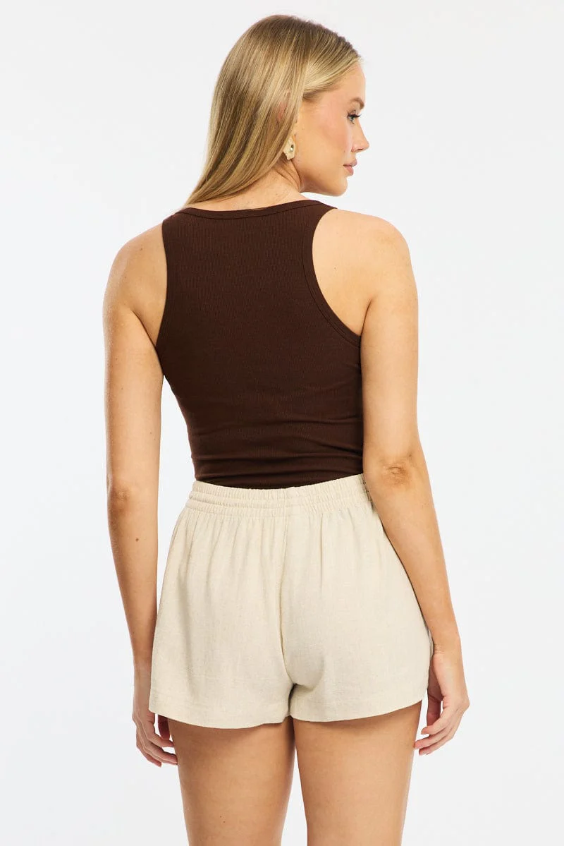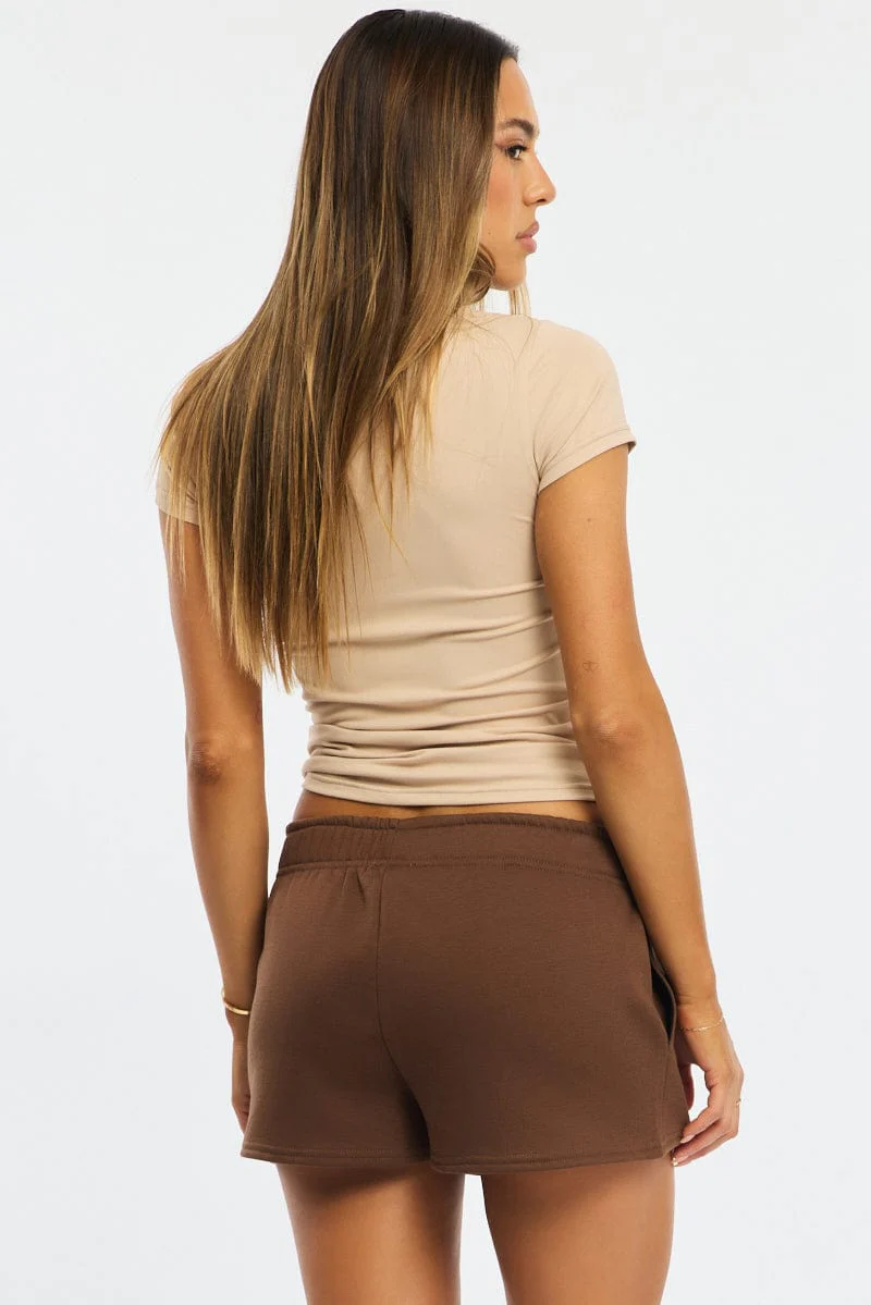 Brown Mini Skort High Rise Front Split Begaline Lined