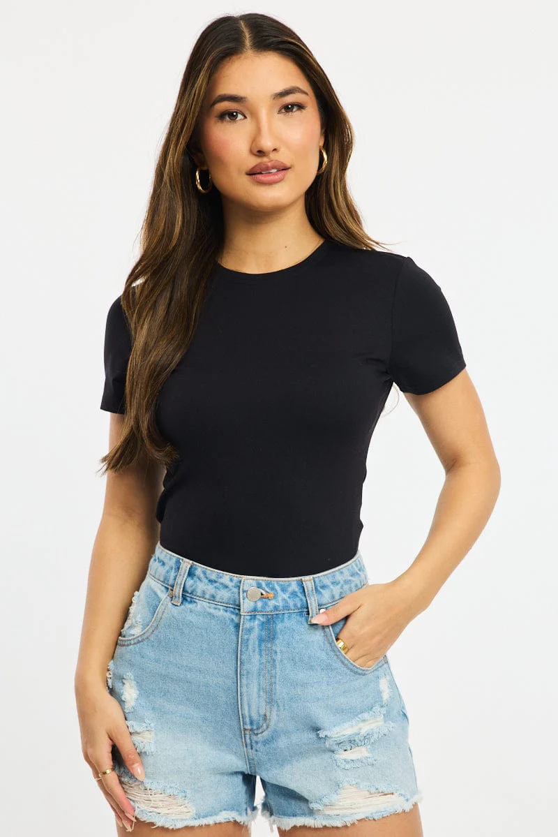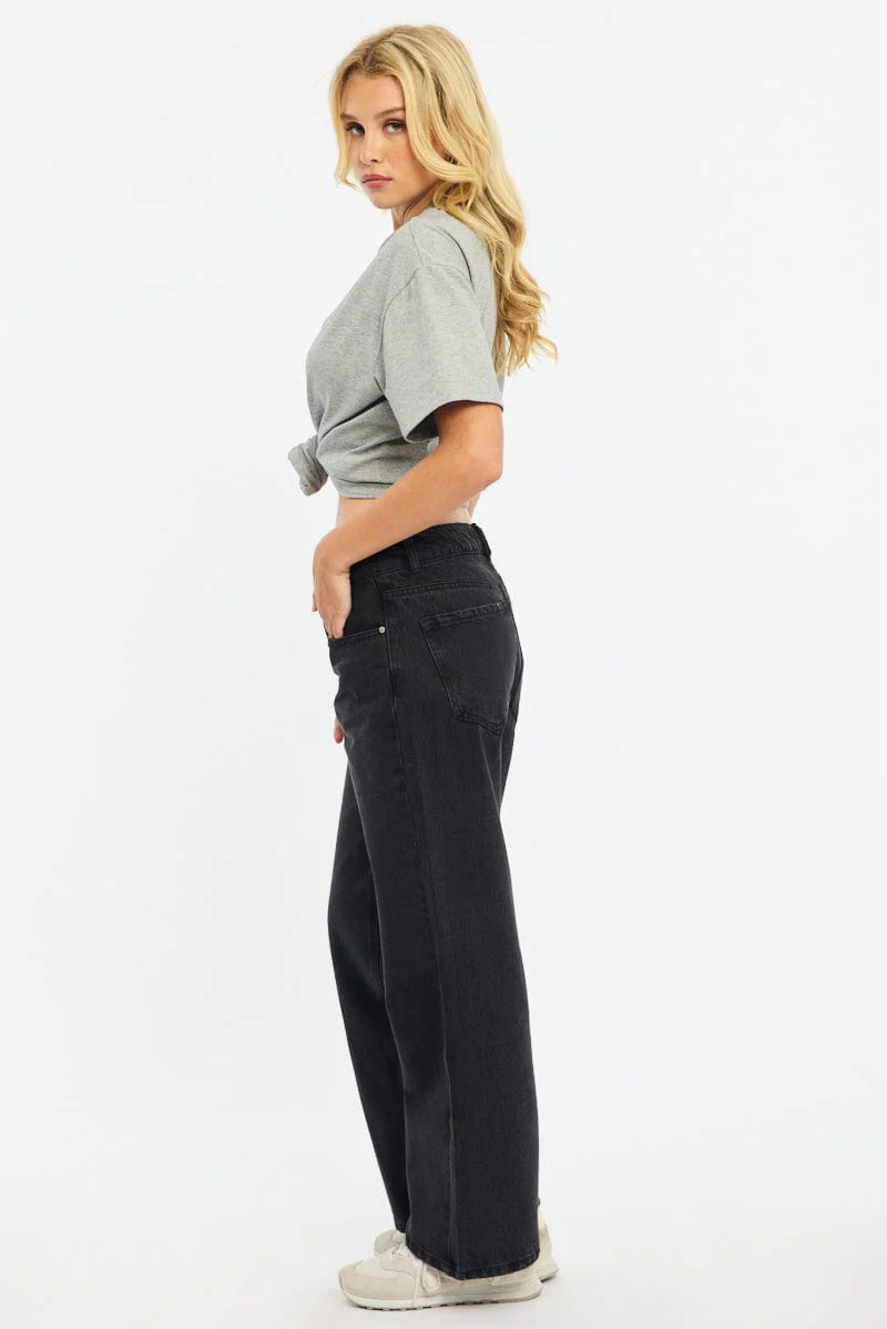 Black Maxi Skirt Elastic Waist Lace Trim Detail Lined