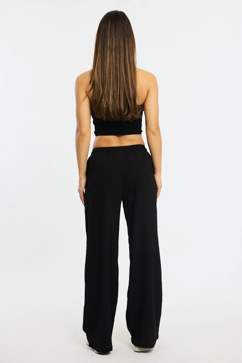 Black Wide Leg Pants Elasticated Waist