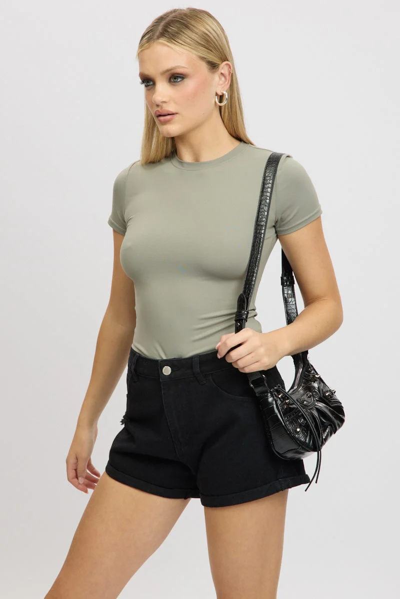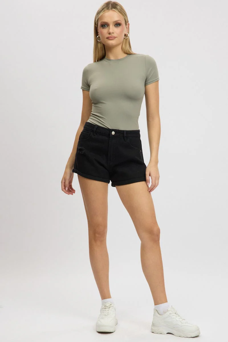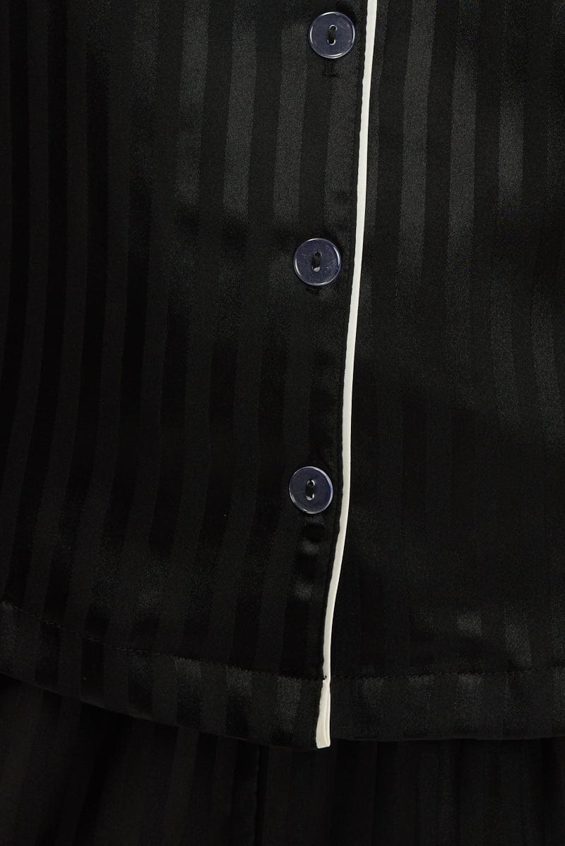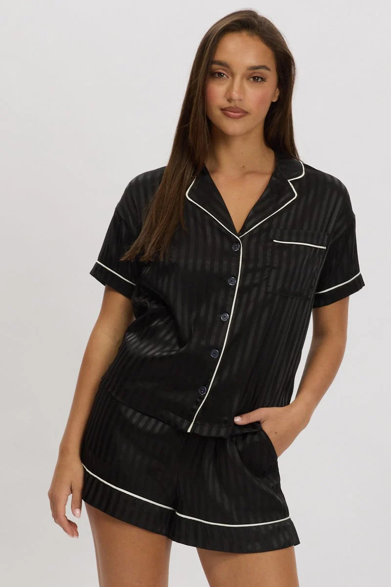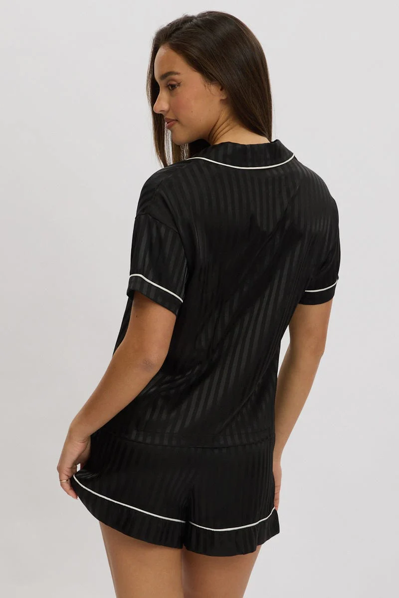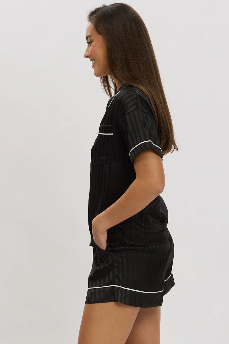 Black Stripe Satin Pyjamas Set Short Sleeve