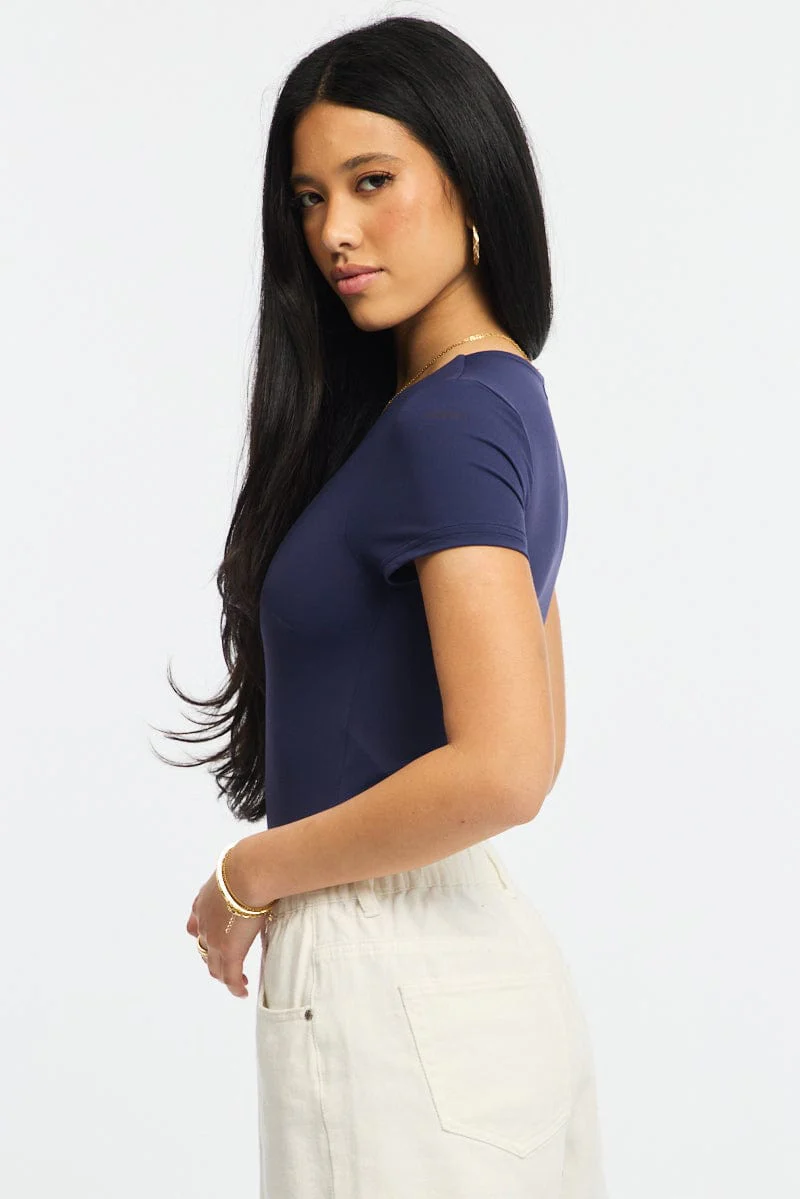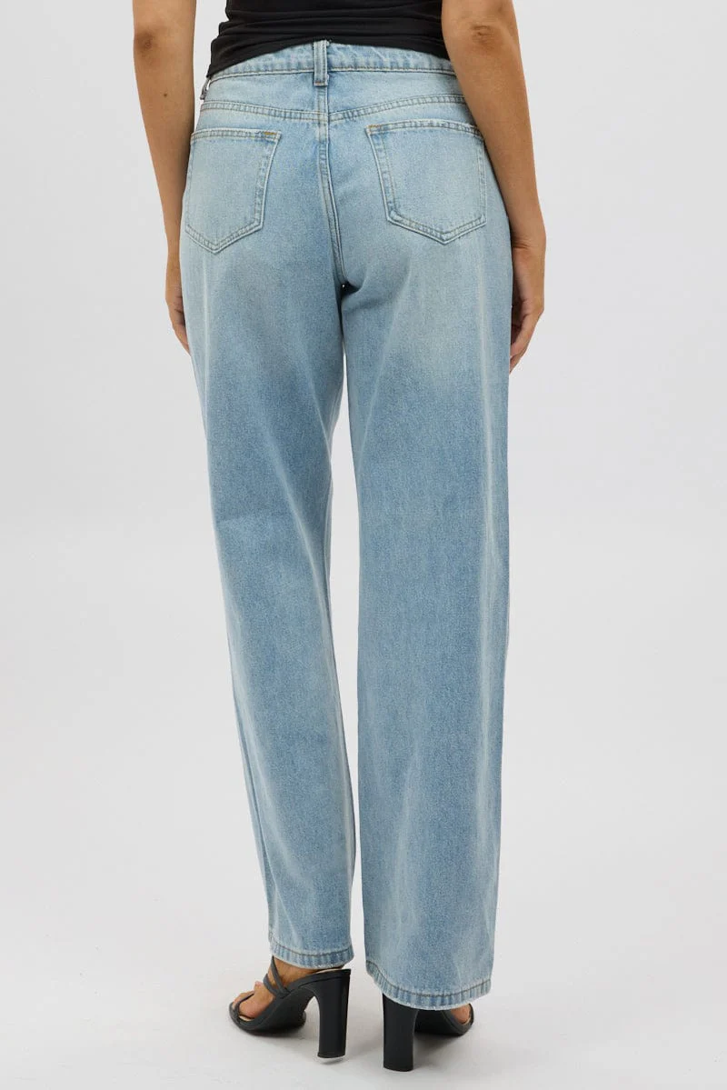 Blue Stripe Maxi Skirt Shirred Waist Tiered Relaxed Fit