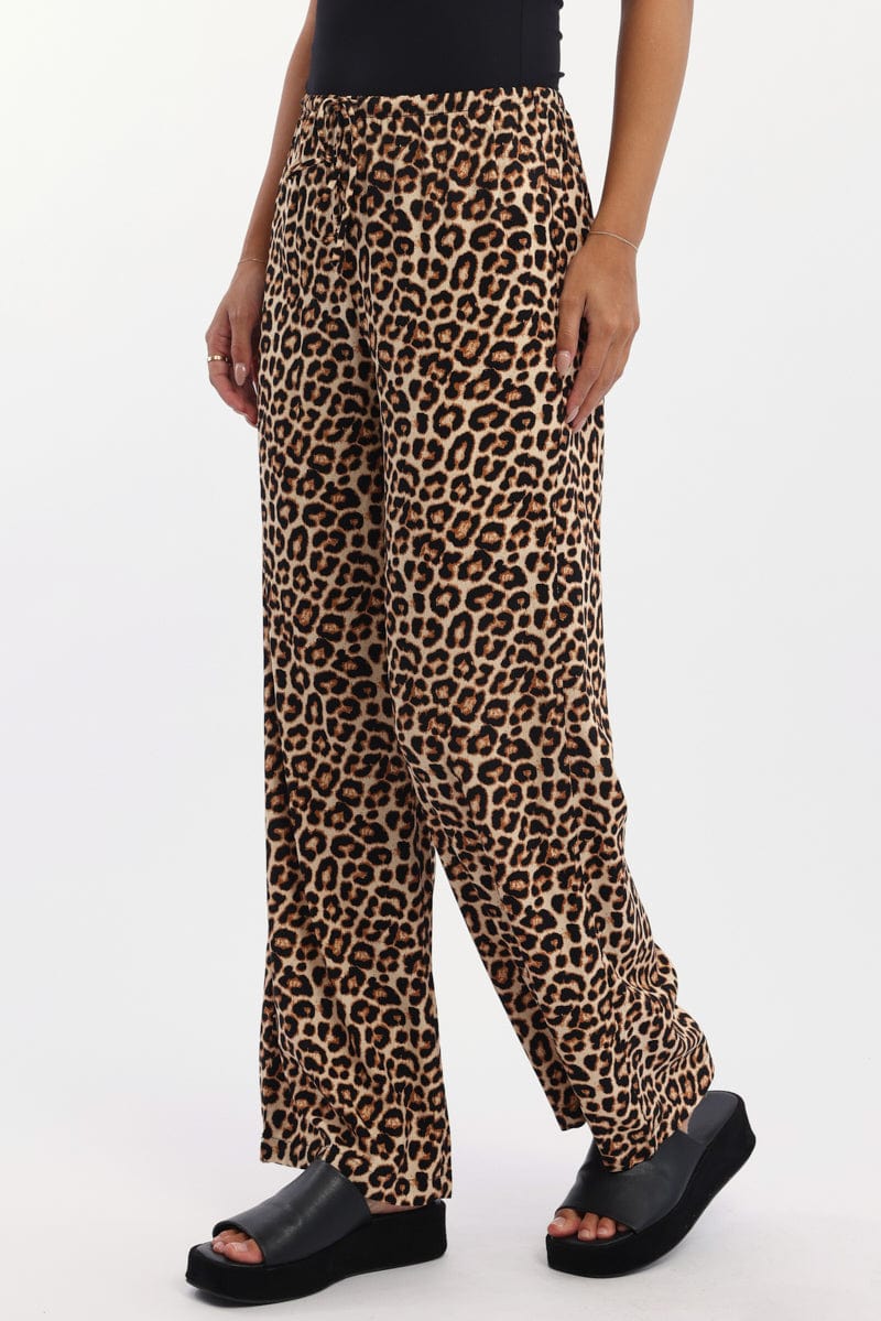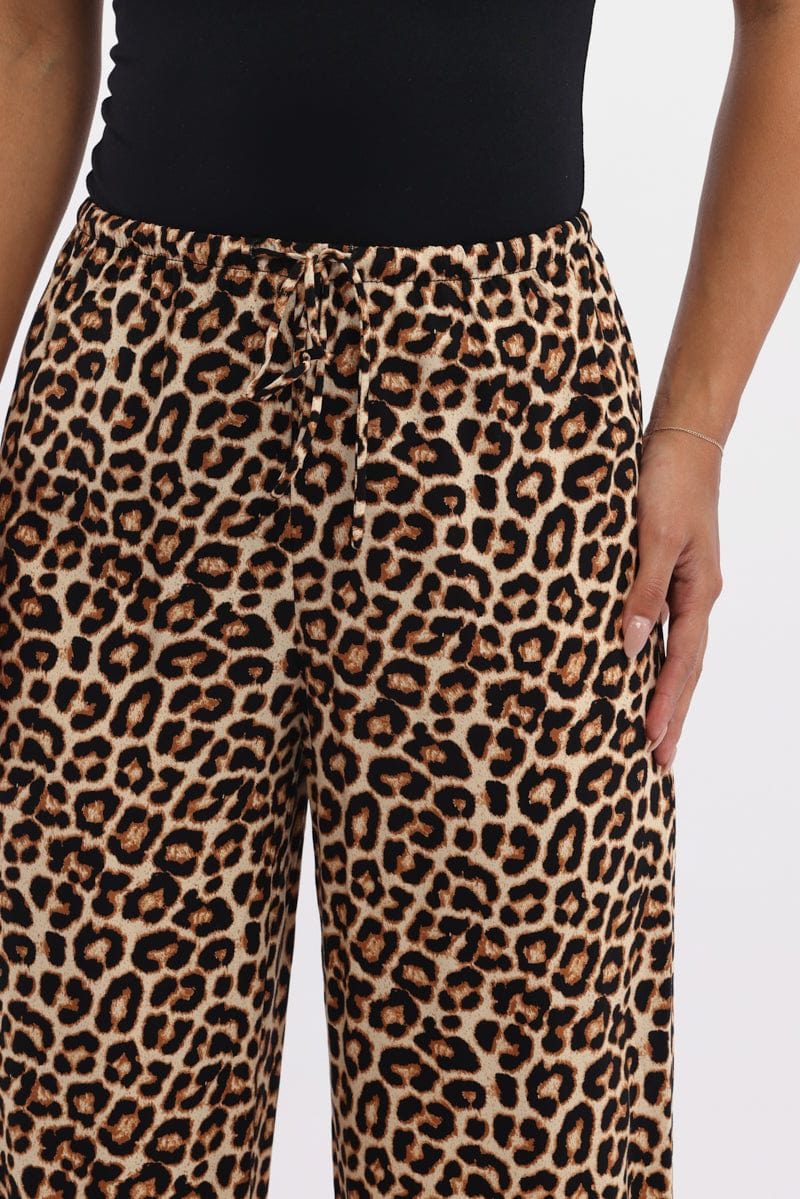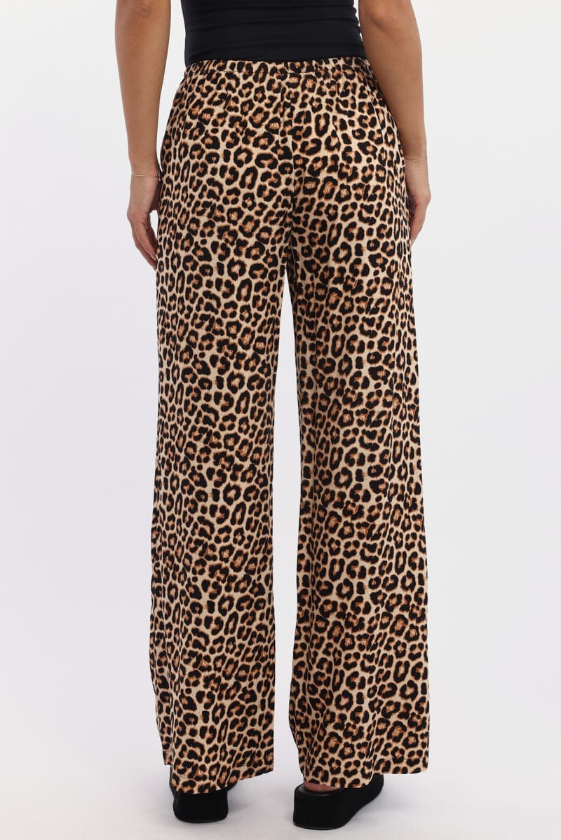 Brown Animal Print Wide Leg Pants Low Rise