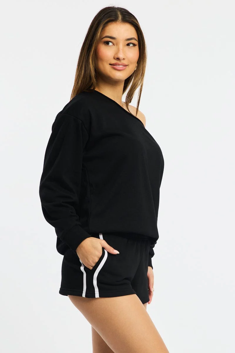 Black Track Shorts Elasticated