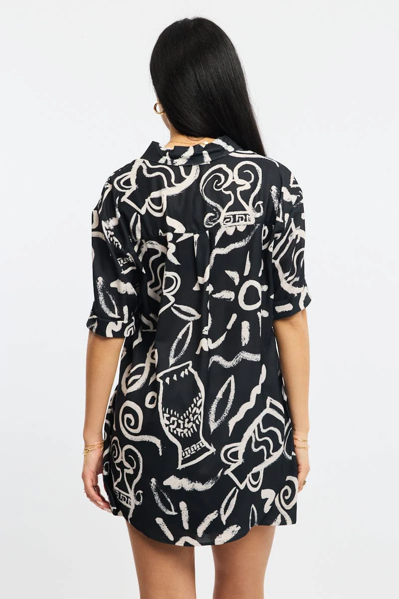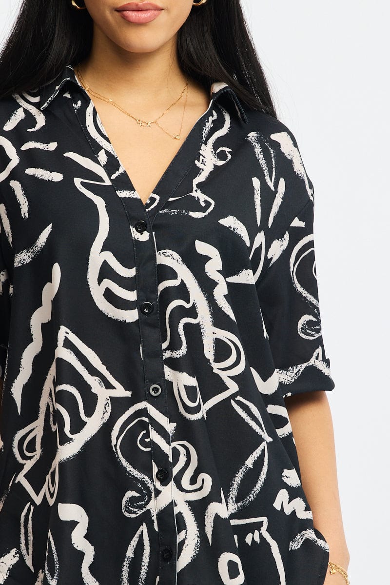 Black Abstract Relaxed Shirt Short Sleeve