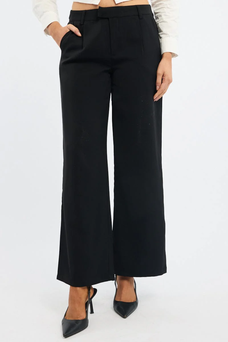 Black Wide Leg Pants Mid Rise