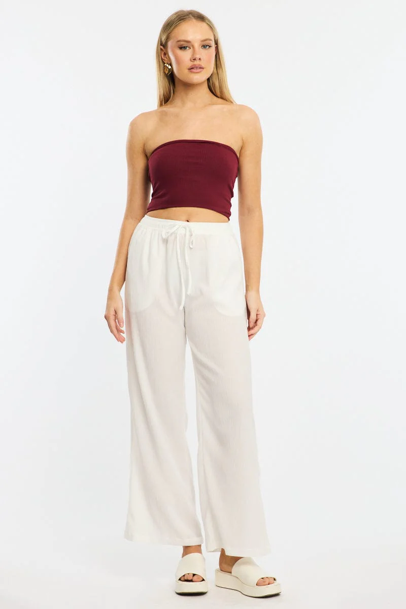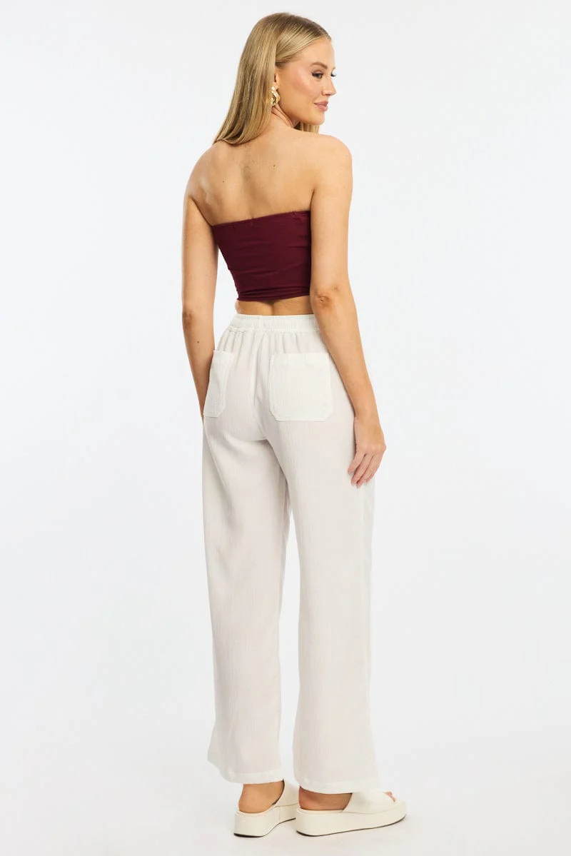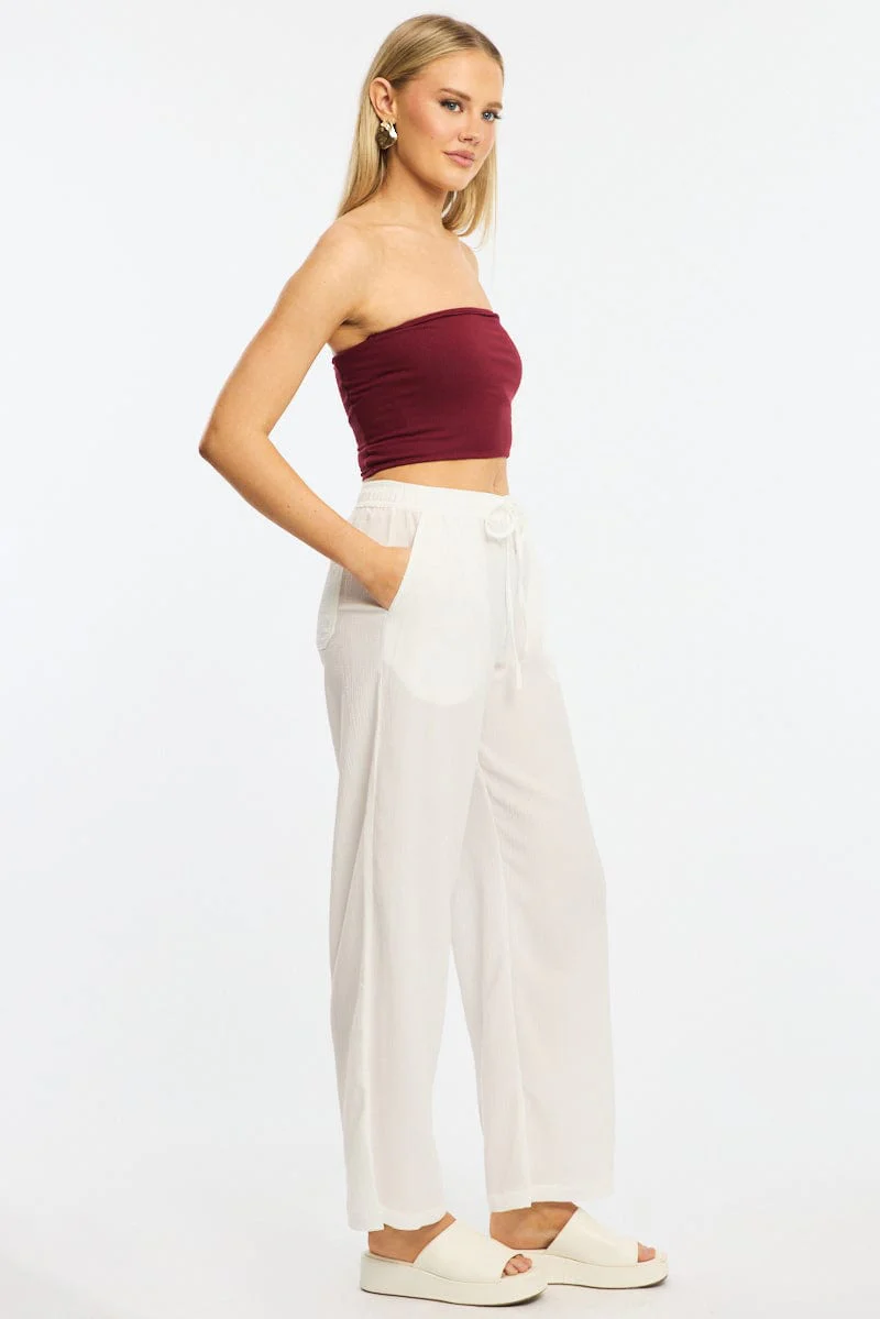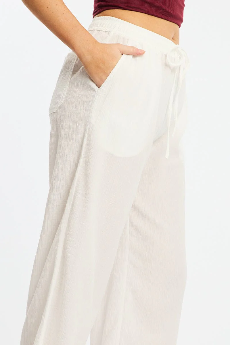 White Wide Leg Pants Elasticated Waist