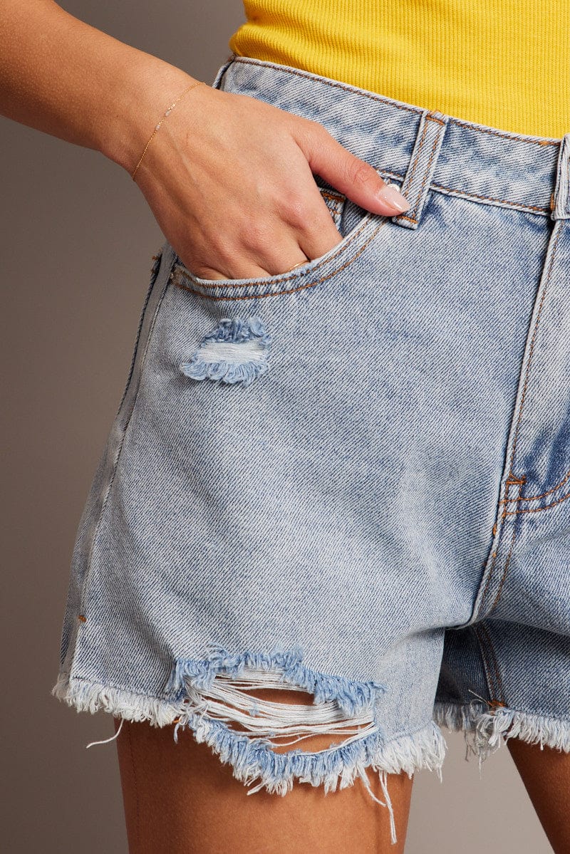 Denim Relaxed Shorts Mid Rise