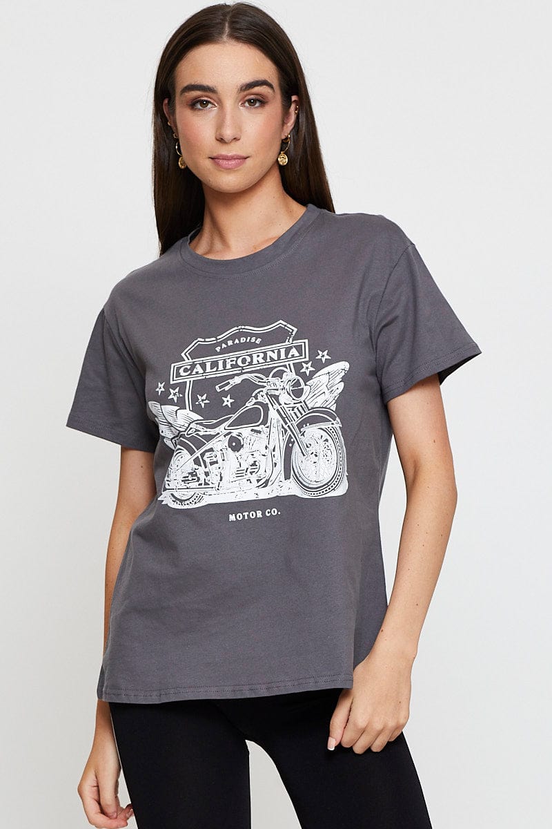 Grey Graphic T-Shirt Short Sleeve