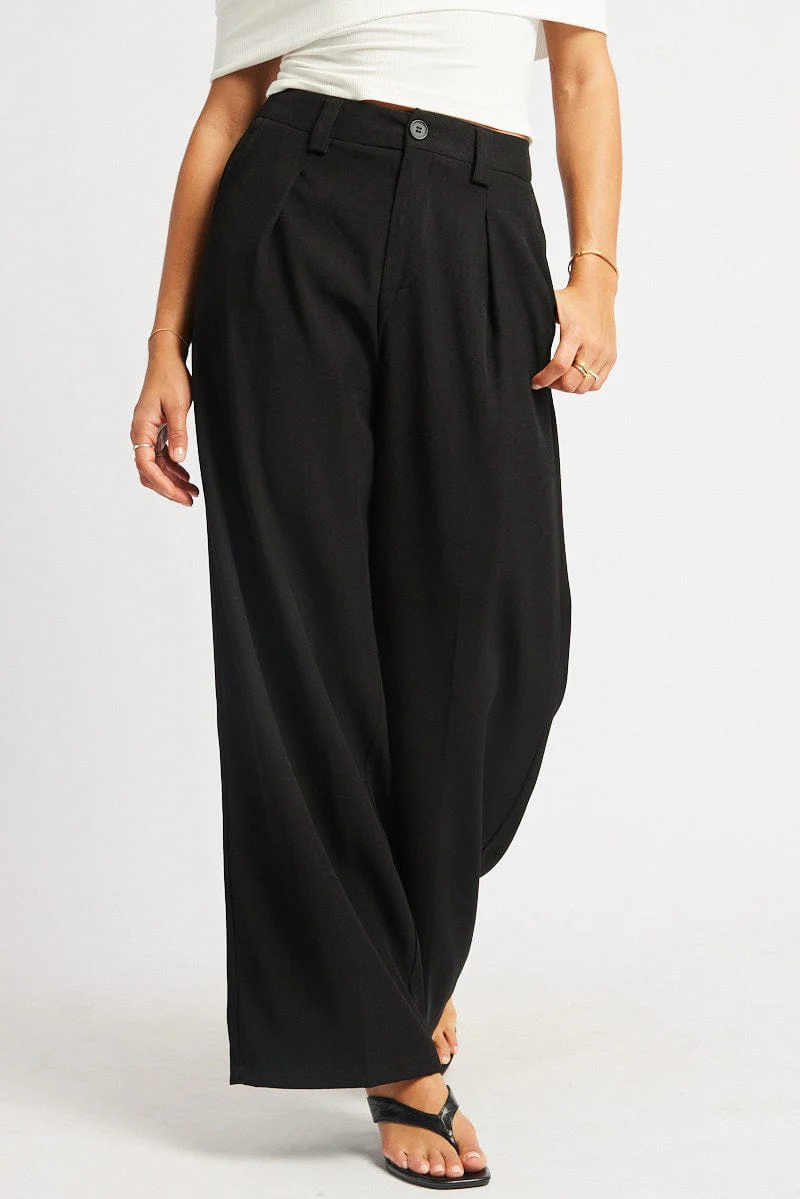 Black Wide Leg Pants High Rise