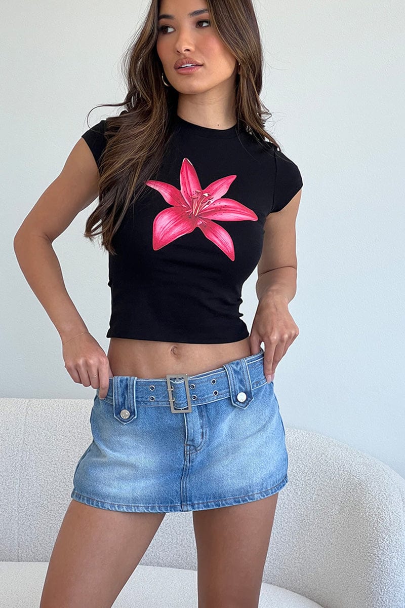 Denim Belted Micro Skort Skirt Low Rise