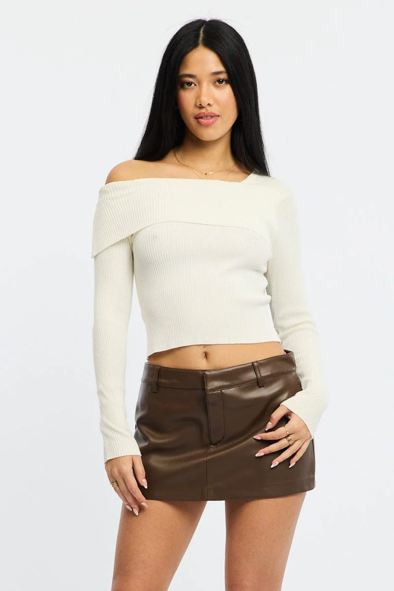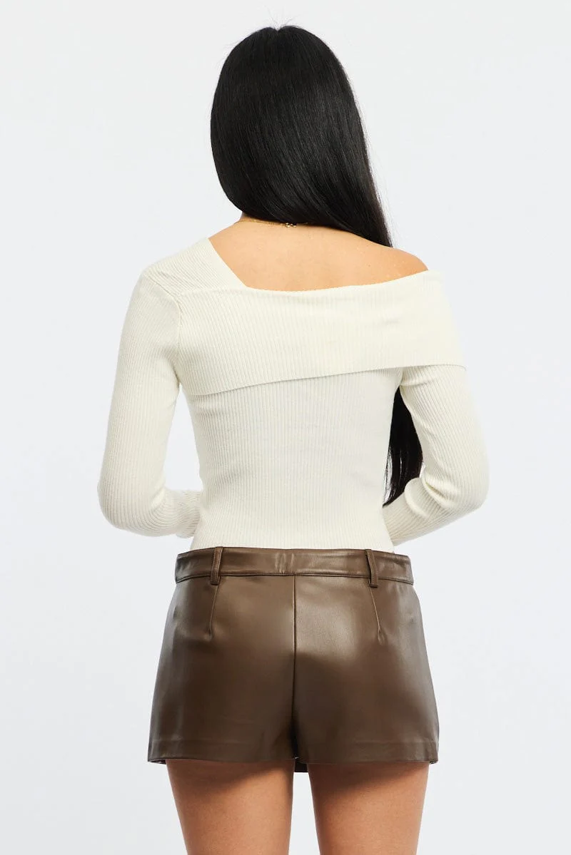 Brown Skort Low Rise Faux Leather