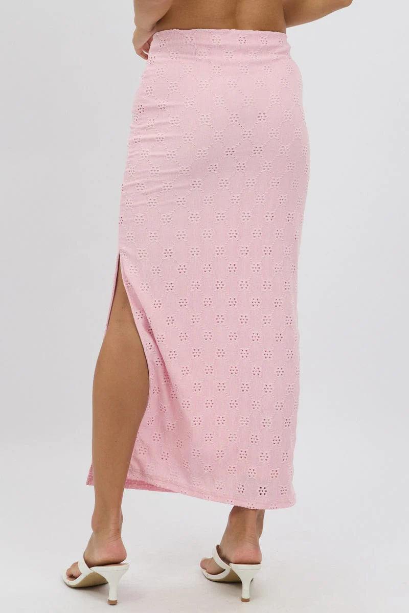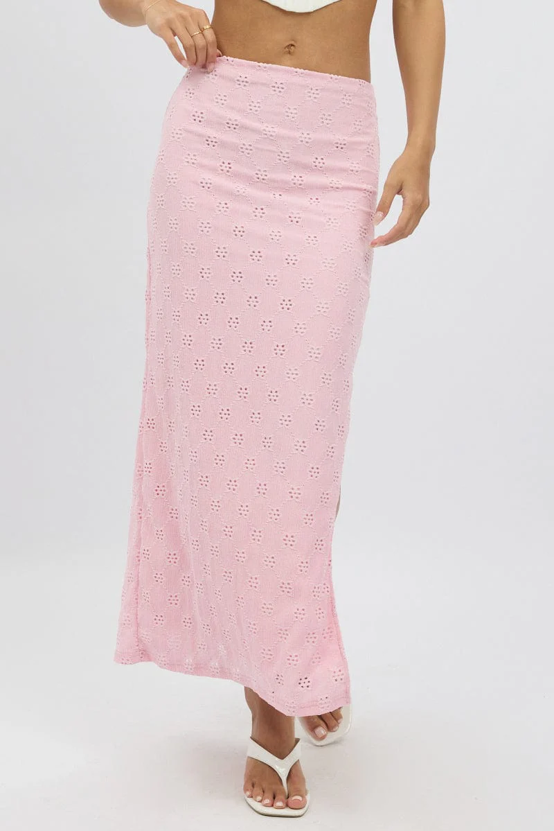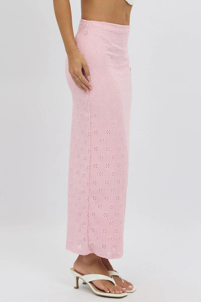 Pink Midaxi Skirt High Rise Stretch Eyelet