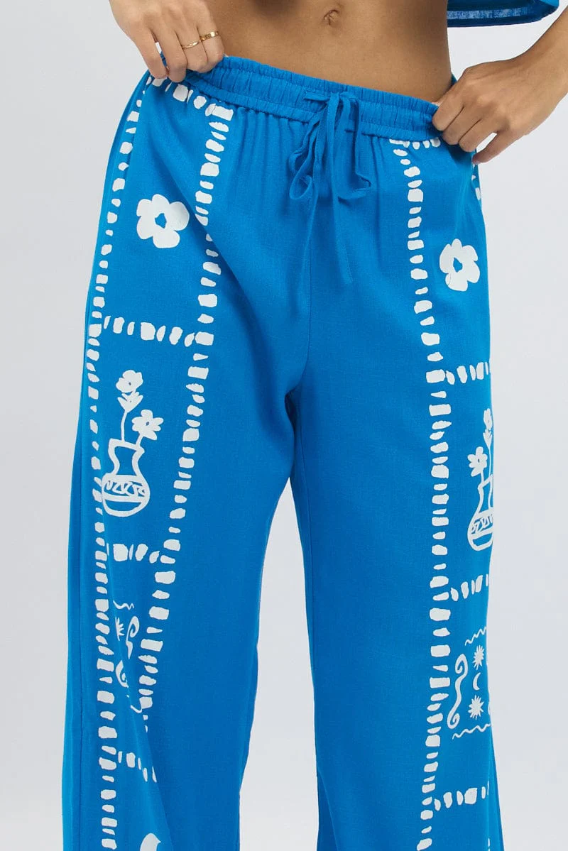 Blue Wide Leg Pants Elasticated Waist