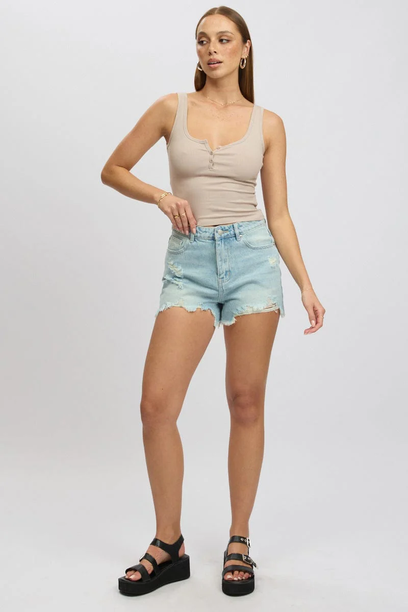 Beige Knit Shorts Elasticated Waist