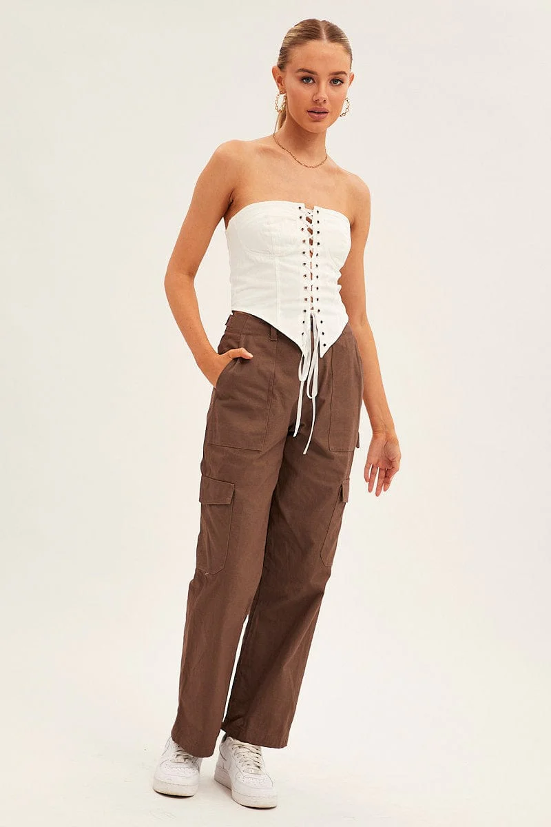 Brown Cargo Pants Mid Rise