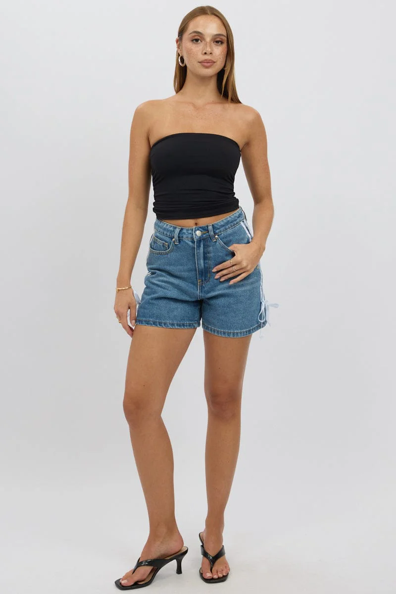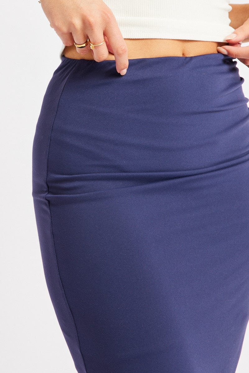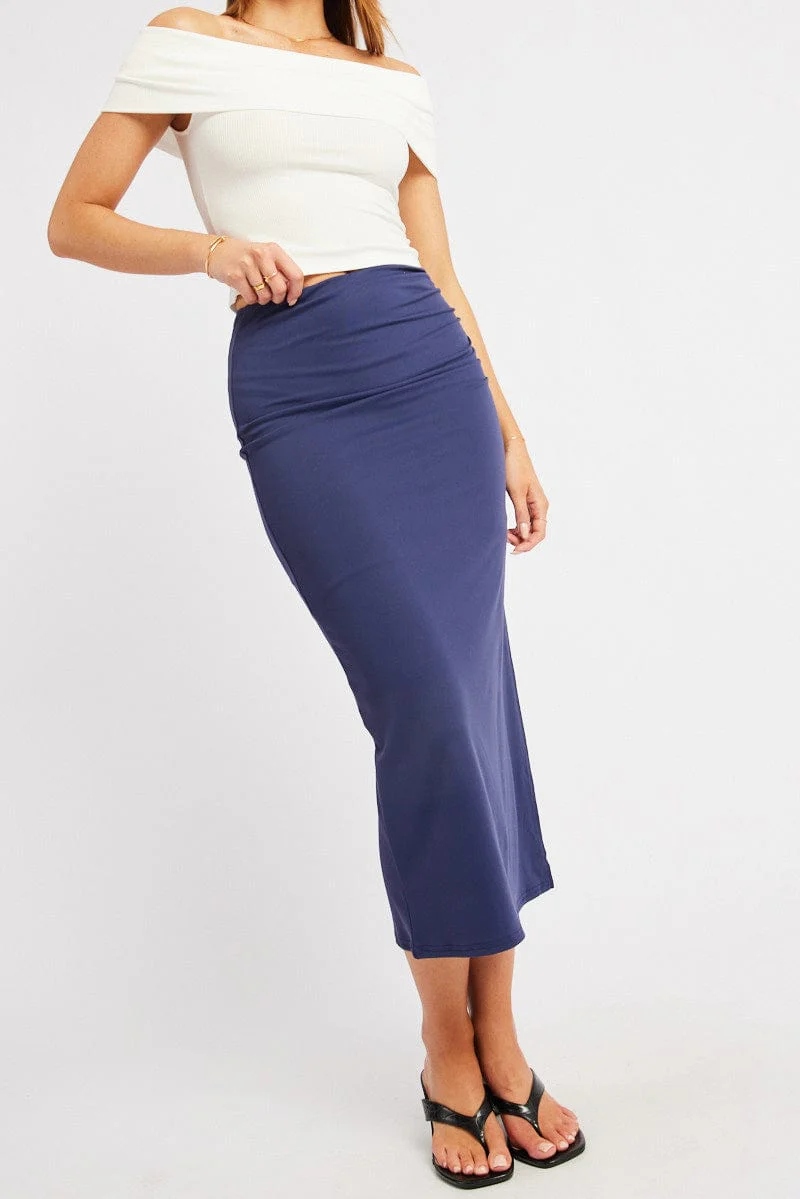 Blue Midaxi Skirt High Rise Ruched Lined Supersoft