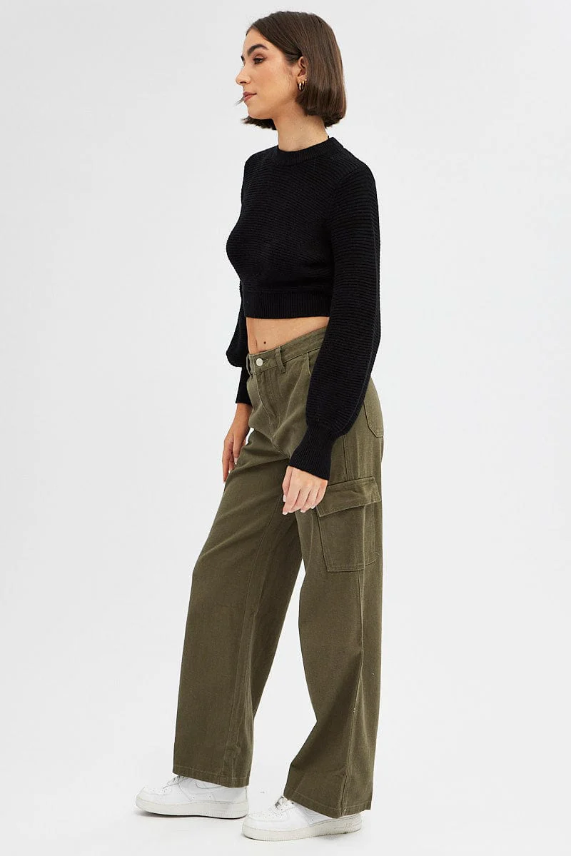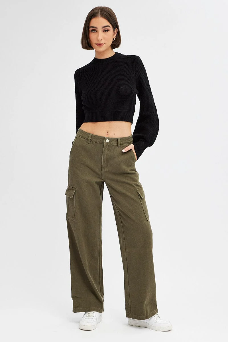 Green Cargo Denim Jeans High Rise