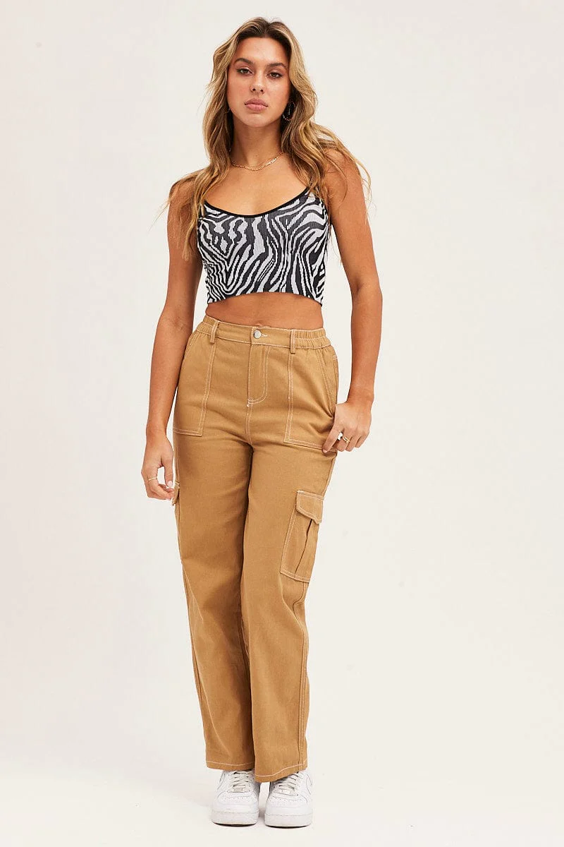 Beige Cargo Pants Out Pocket