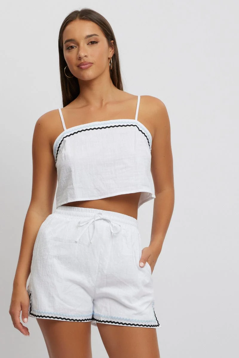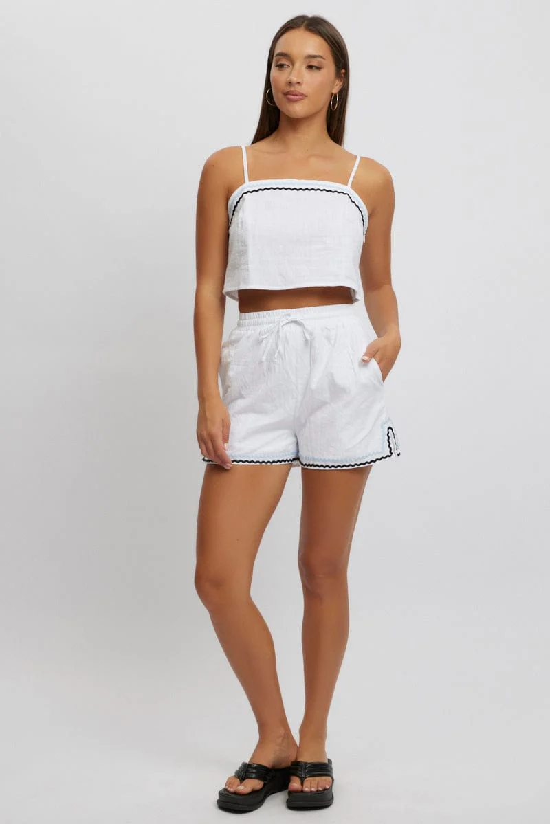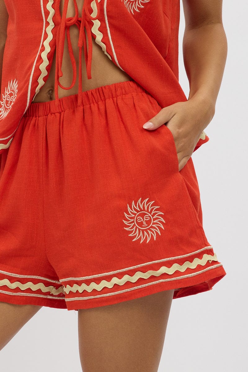 Yellow Mini Skirt Elastic Waist Layered Broidery Eyelet
