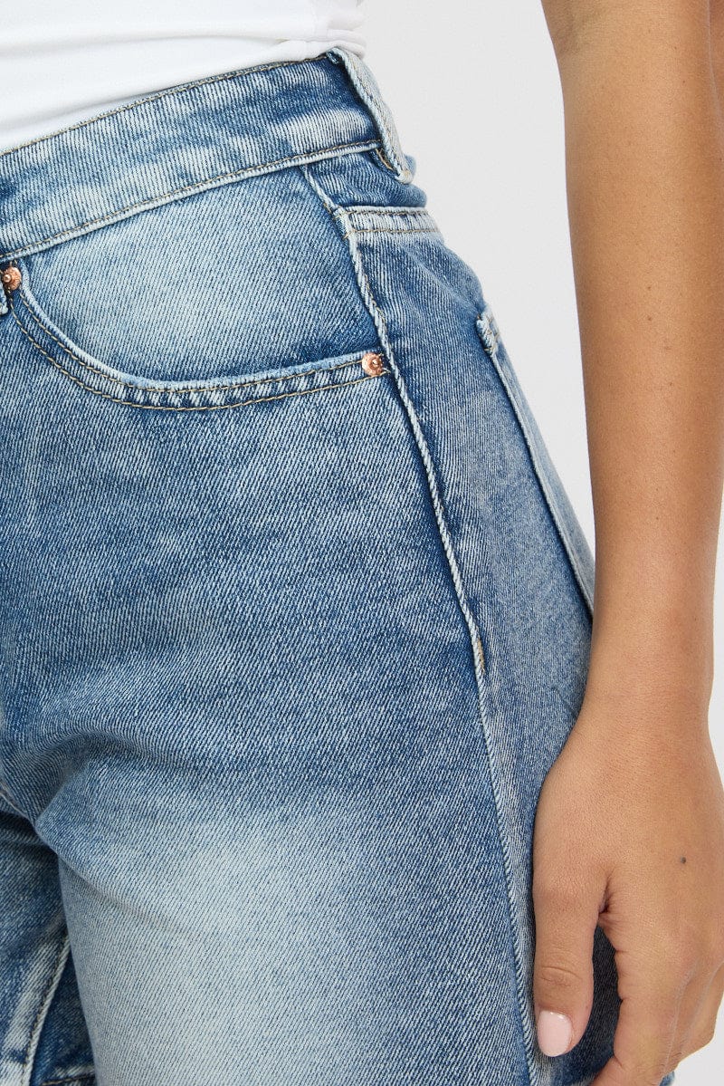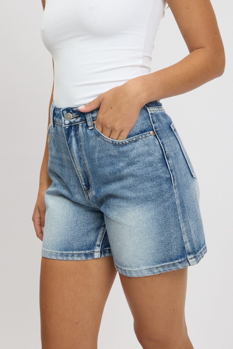 Blue Stripe Mini Shorts High Rise Cotton Blend