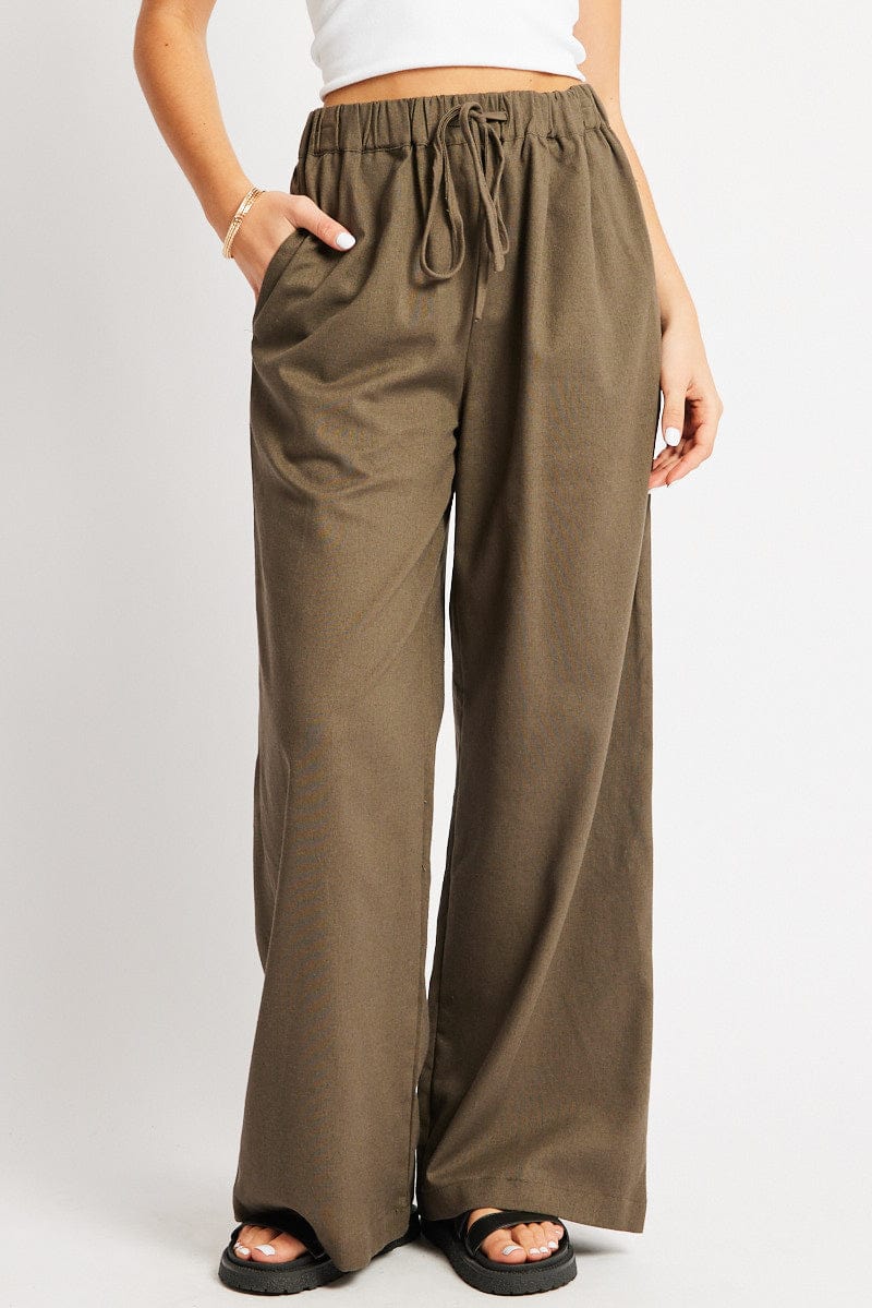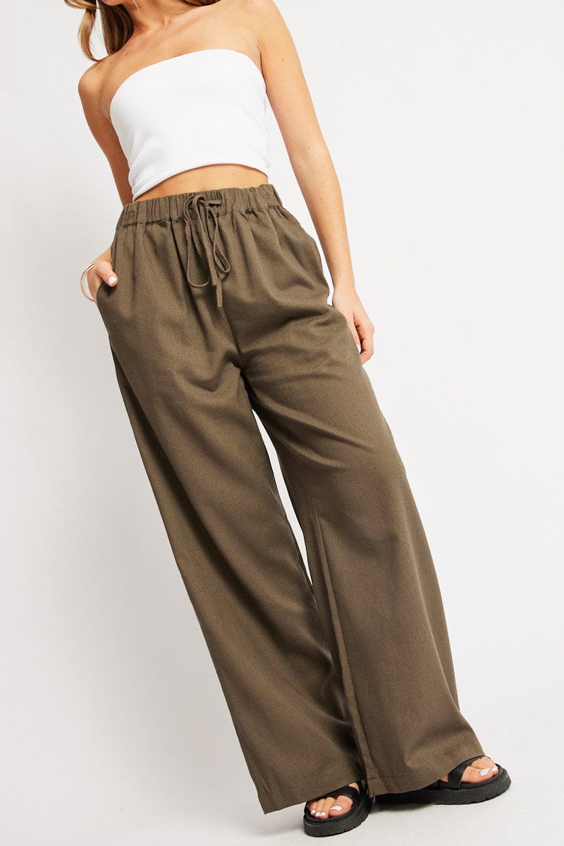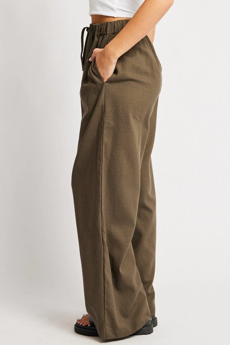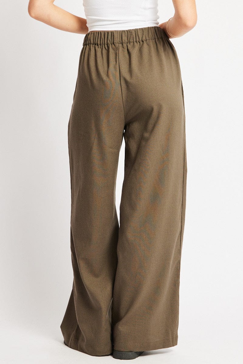 Green Wide Leg Pants Elasticated Waist
