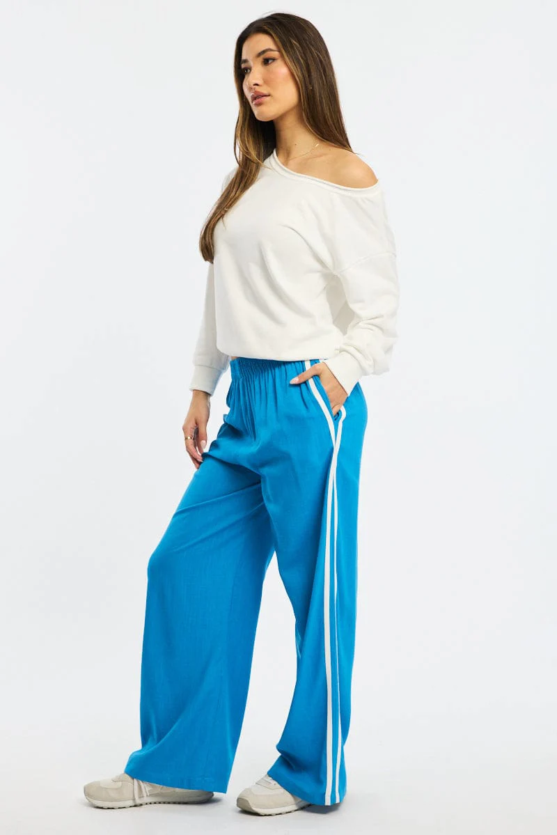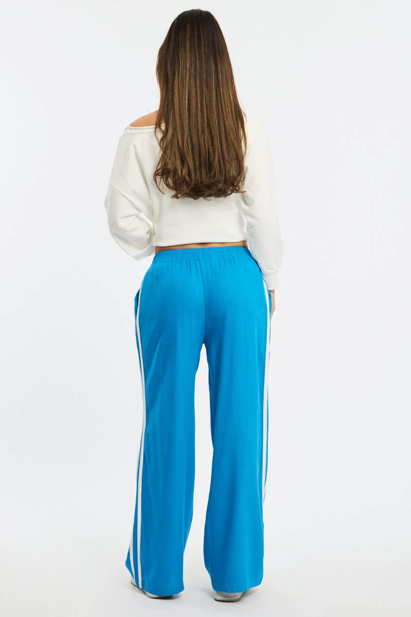 Blue Wide Leg Pants Side Stripe