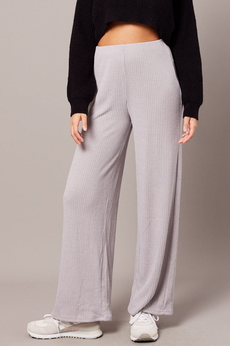 Grey Wide Leg Pants Rib Jersey