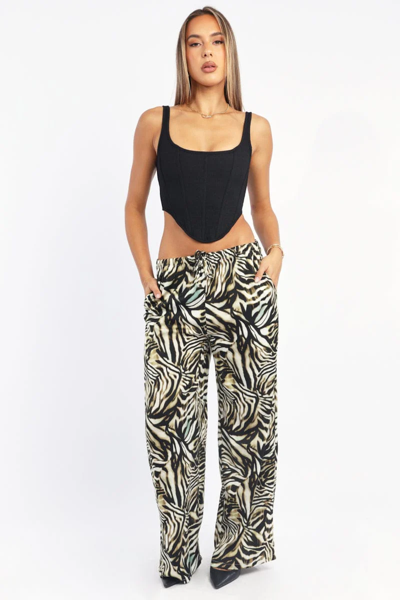 Black Animal Print Wide Leg Pants High Rise