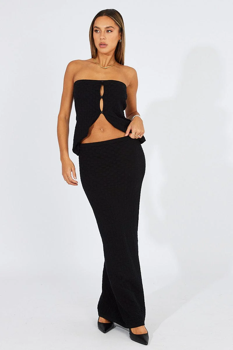 Black Mini Skirt Elastic Waist Assymetric Ruched Front M