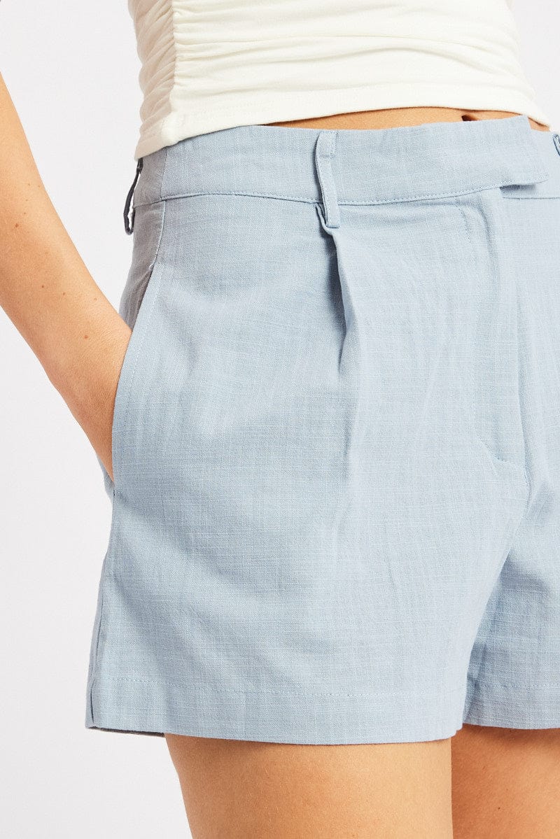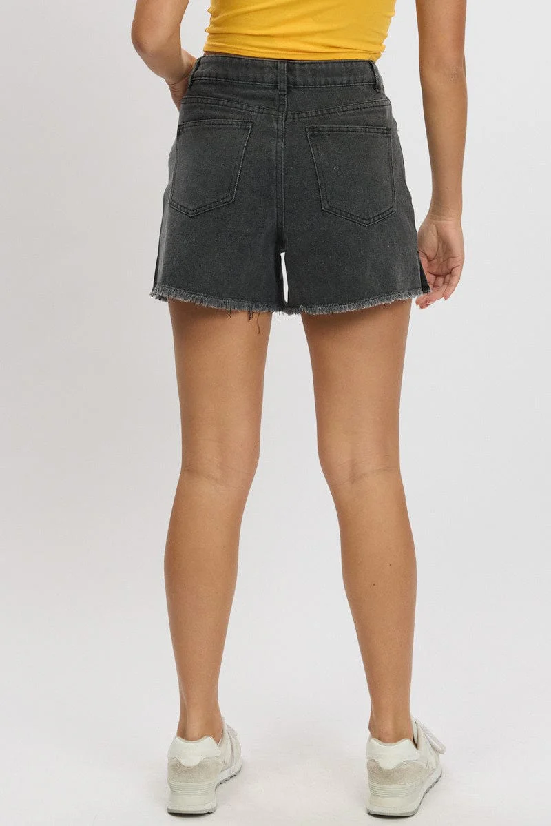 Blue Denim Shorts High Rise Raw Hem Relaxed