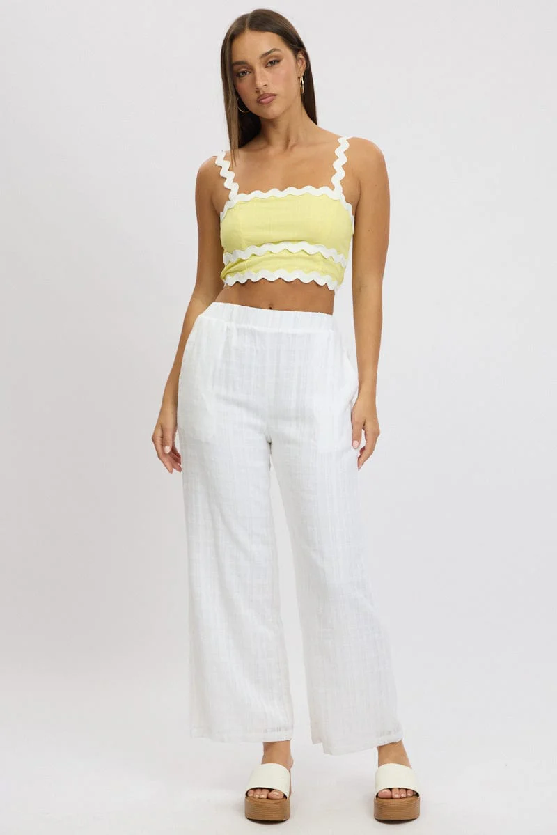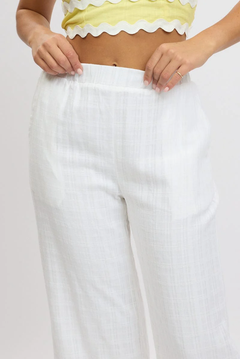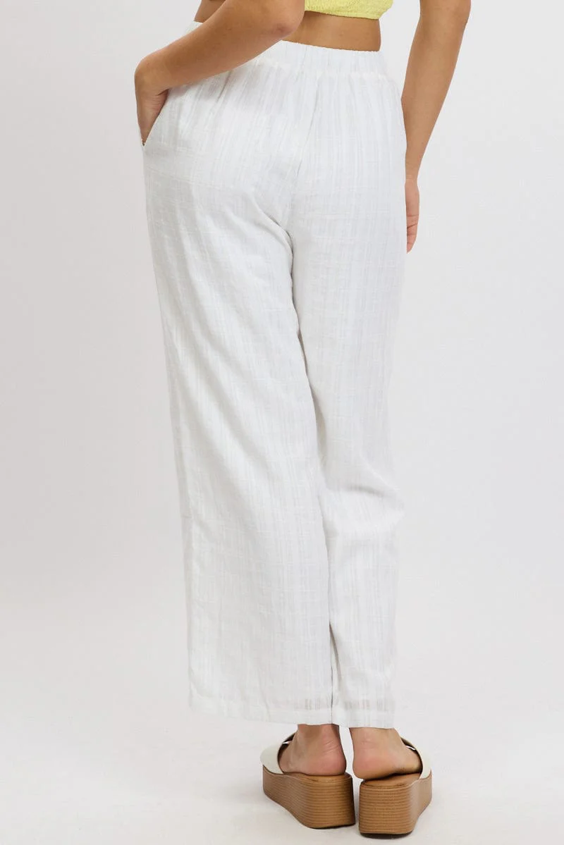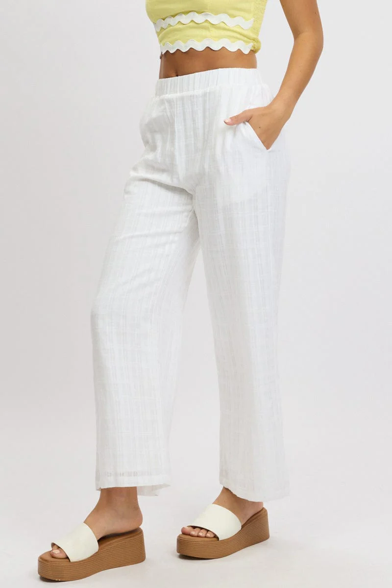 White Wide Leg Pants Elasticated Waist