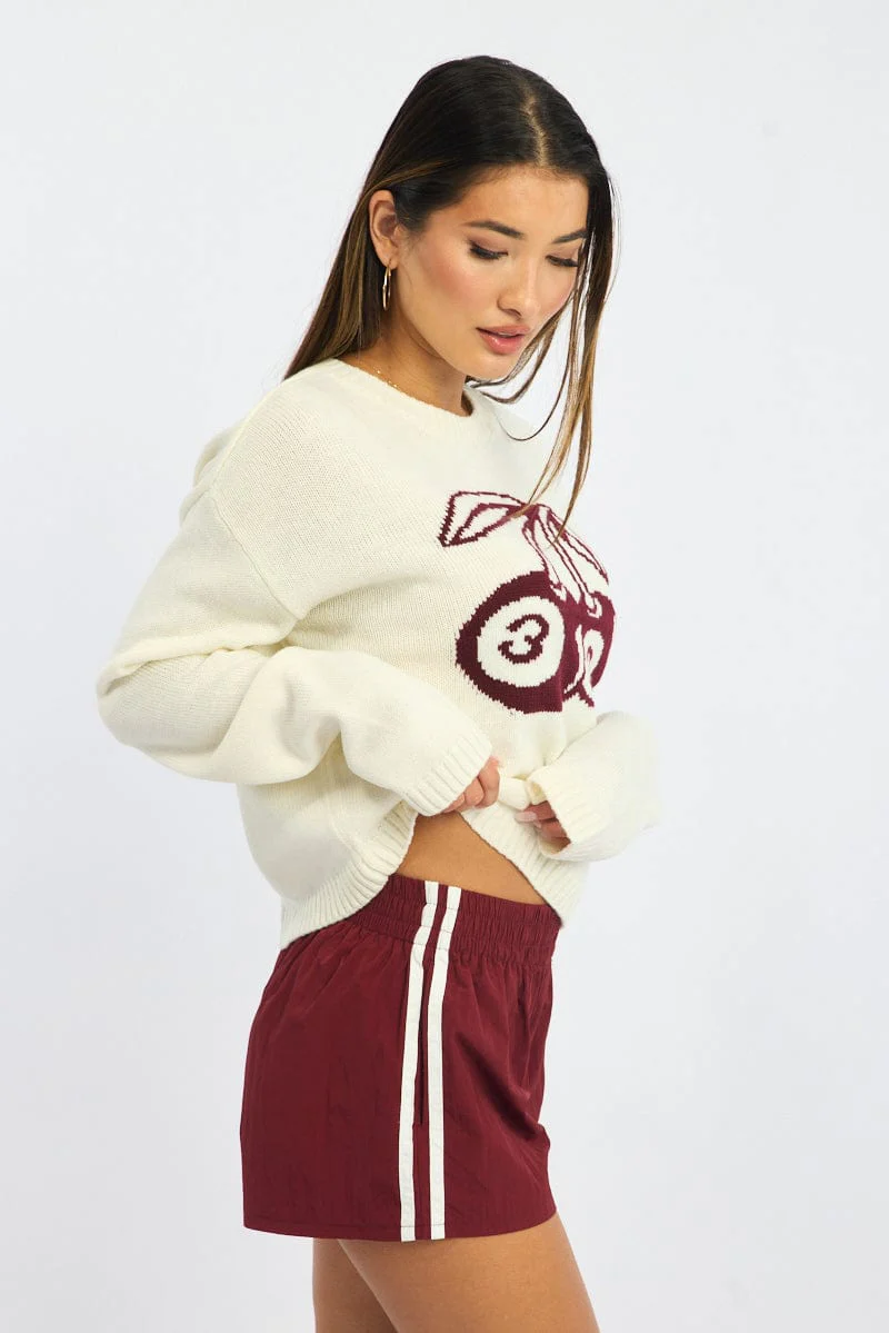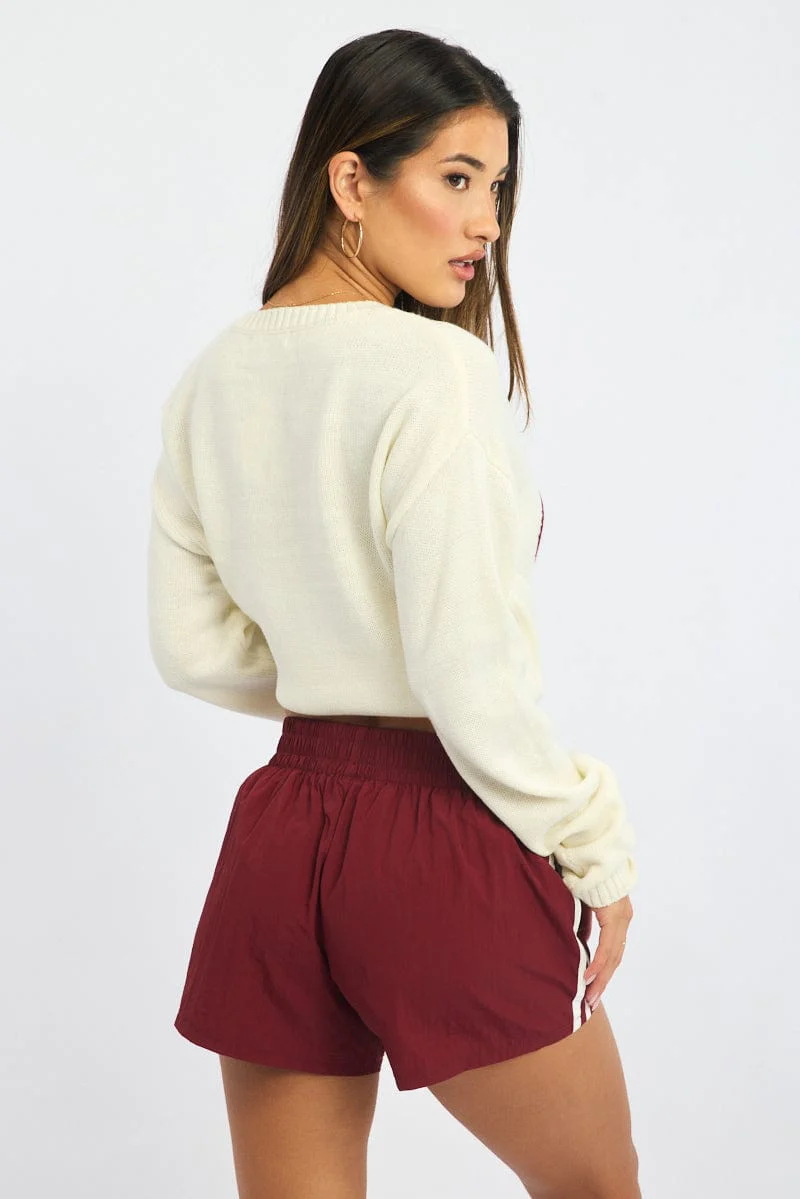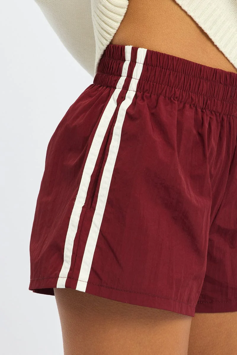 Red Track Shorts Mid Rise