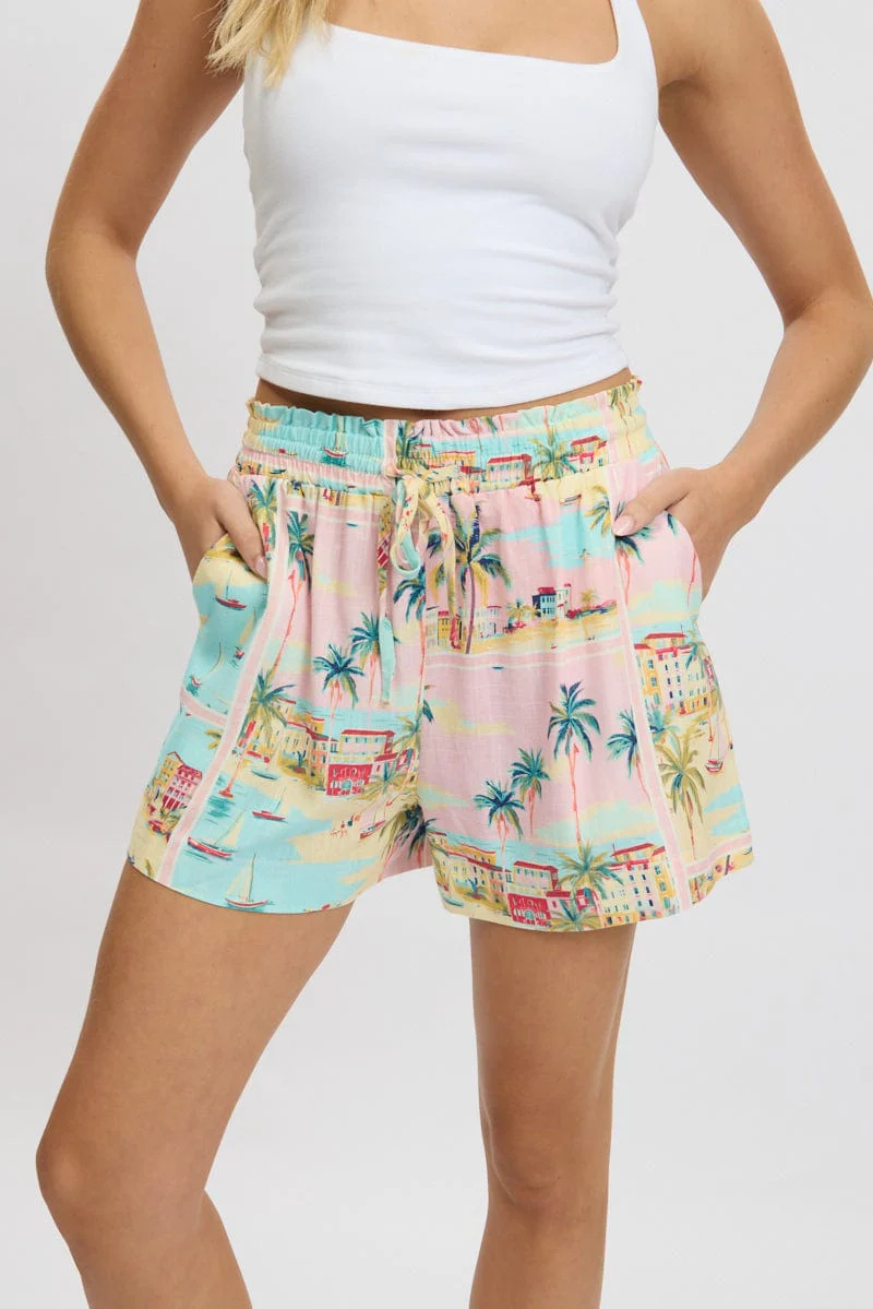 Multi Abstract Relaxed Shorts High Rise