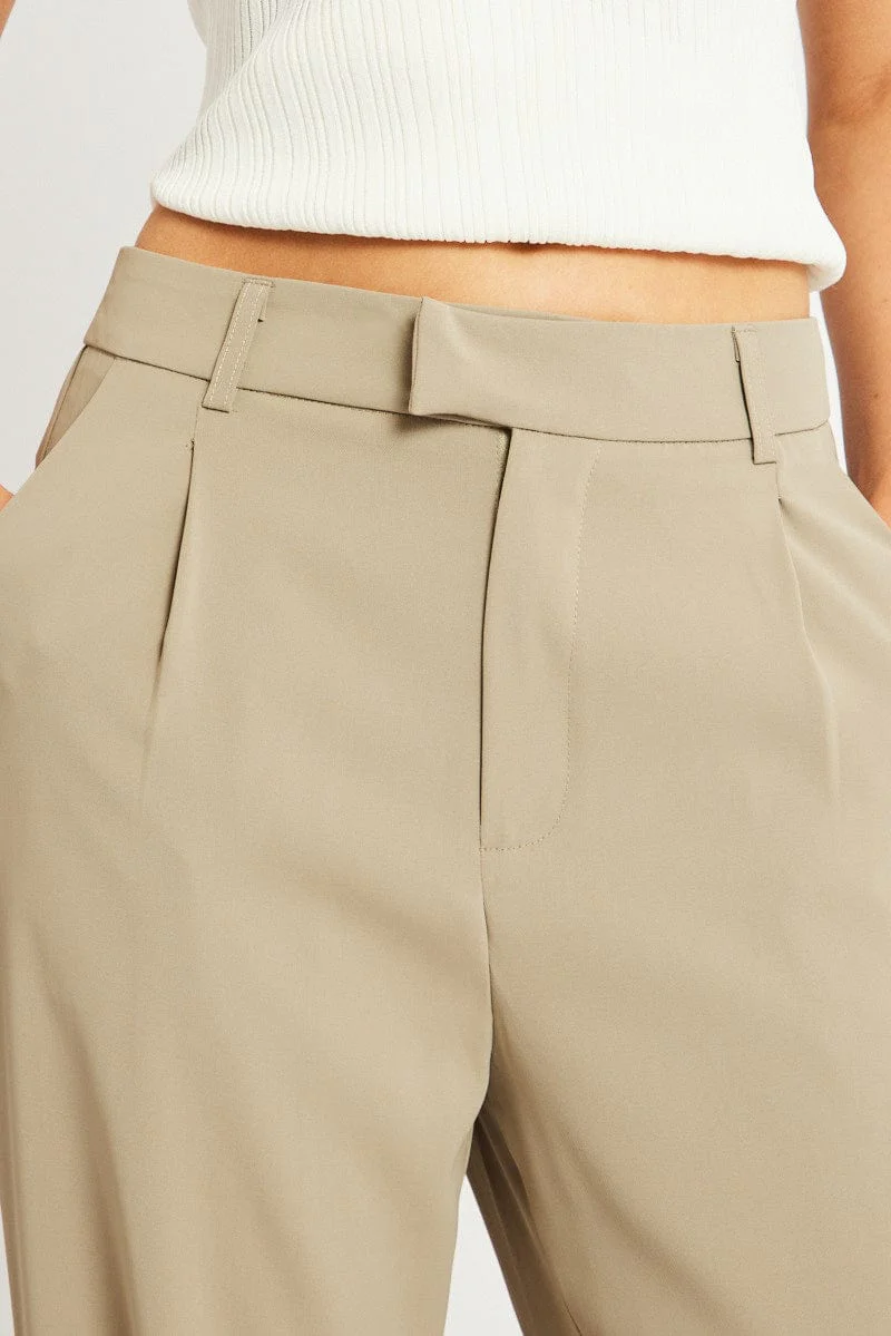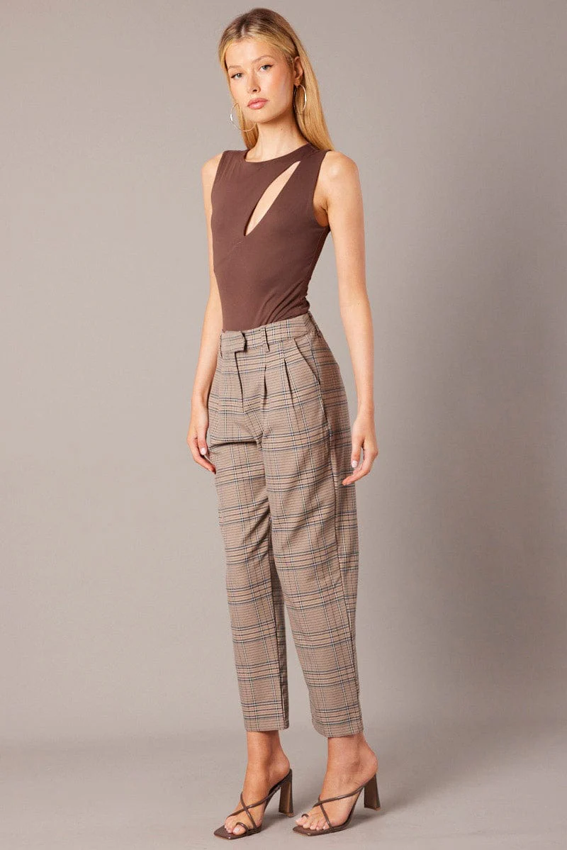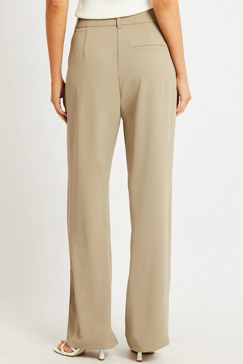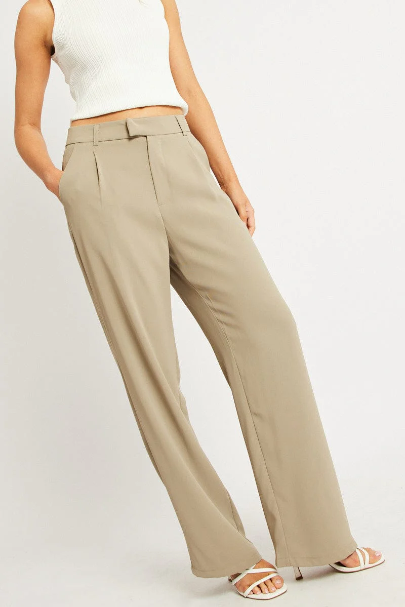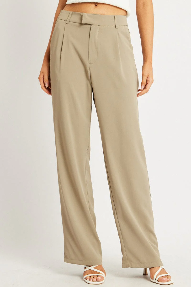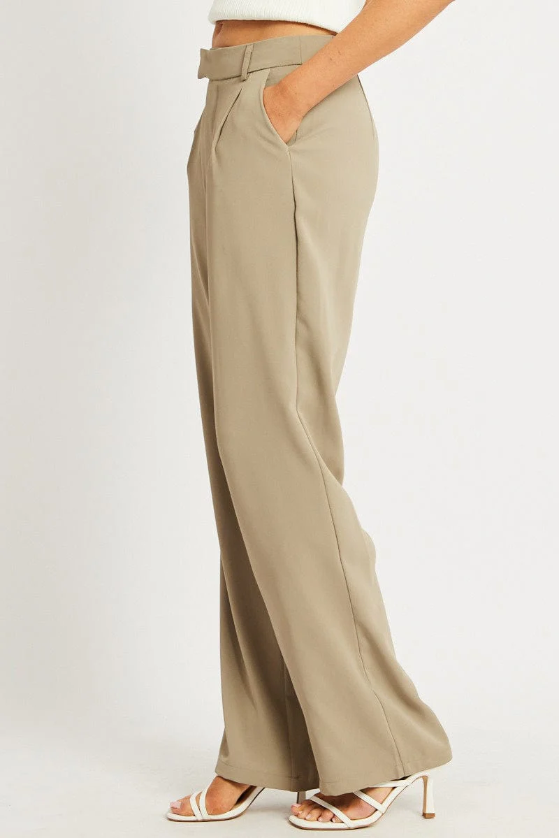 Brown Wide Leg Pants Mid Rise