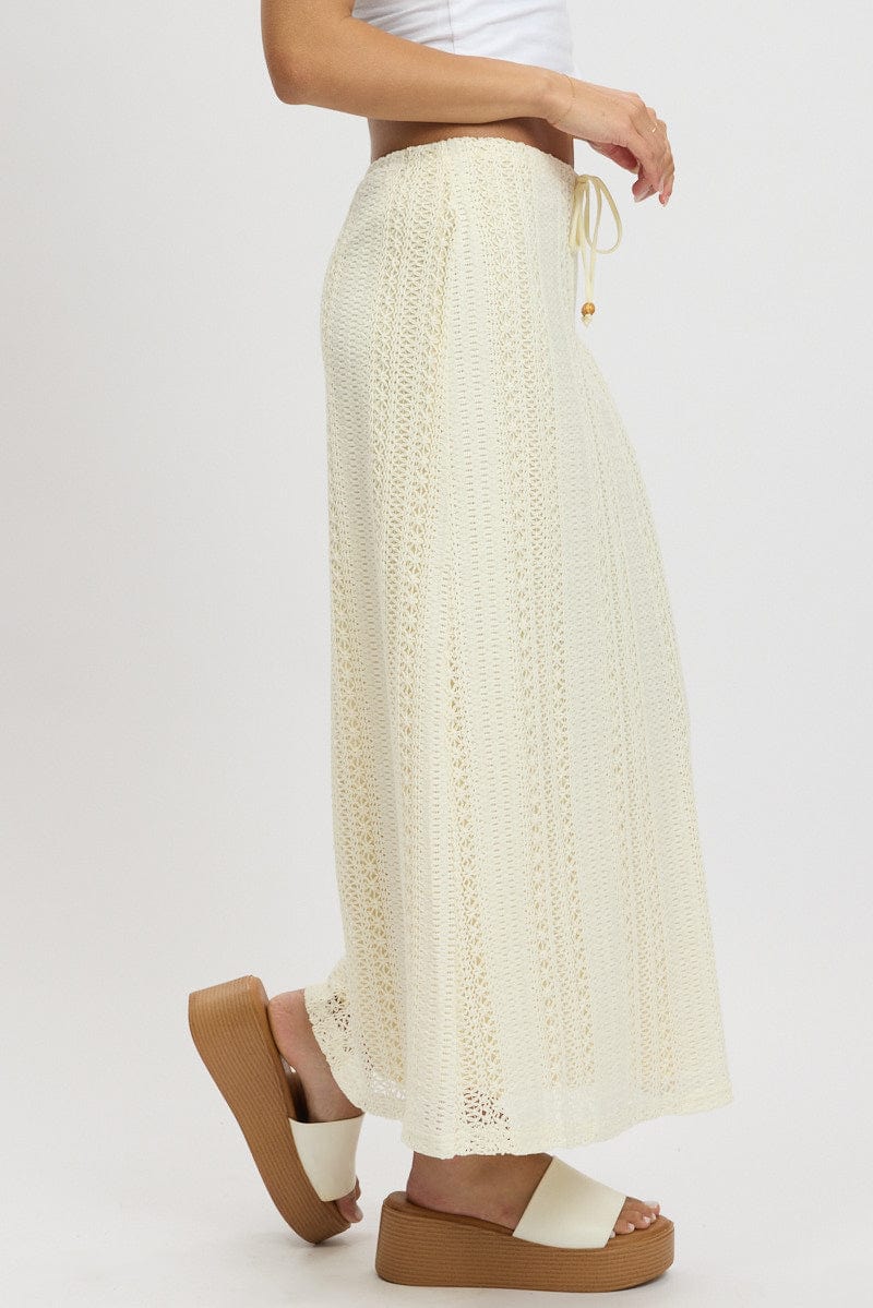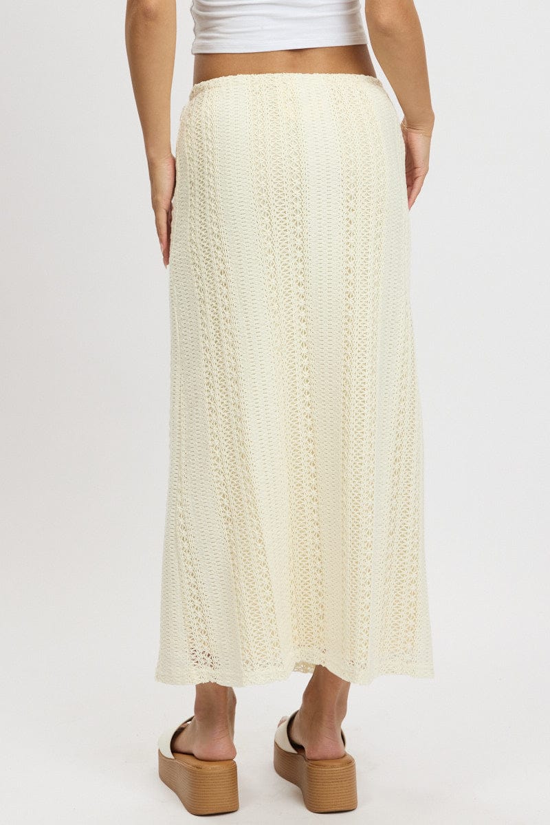 White Crochet Maxi Skirt High Rise Relaxed Lined