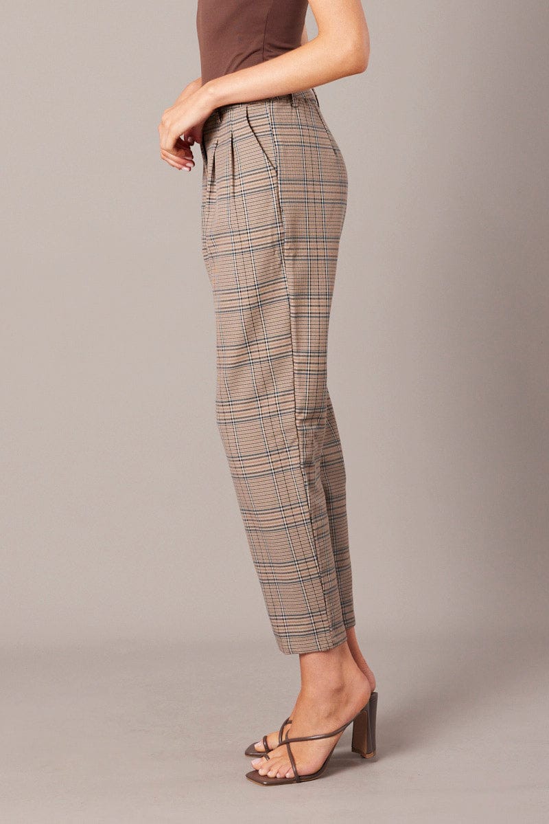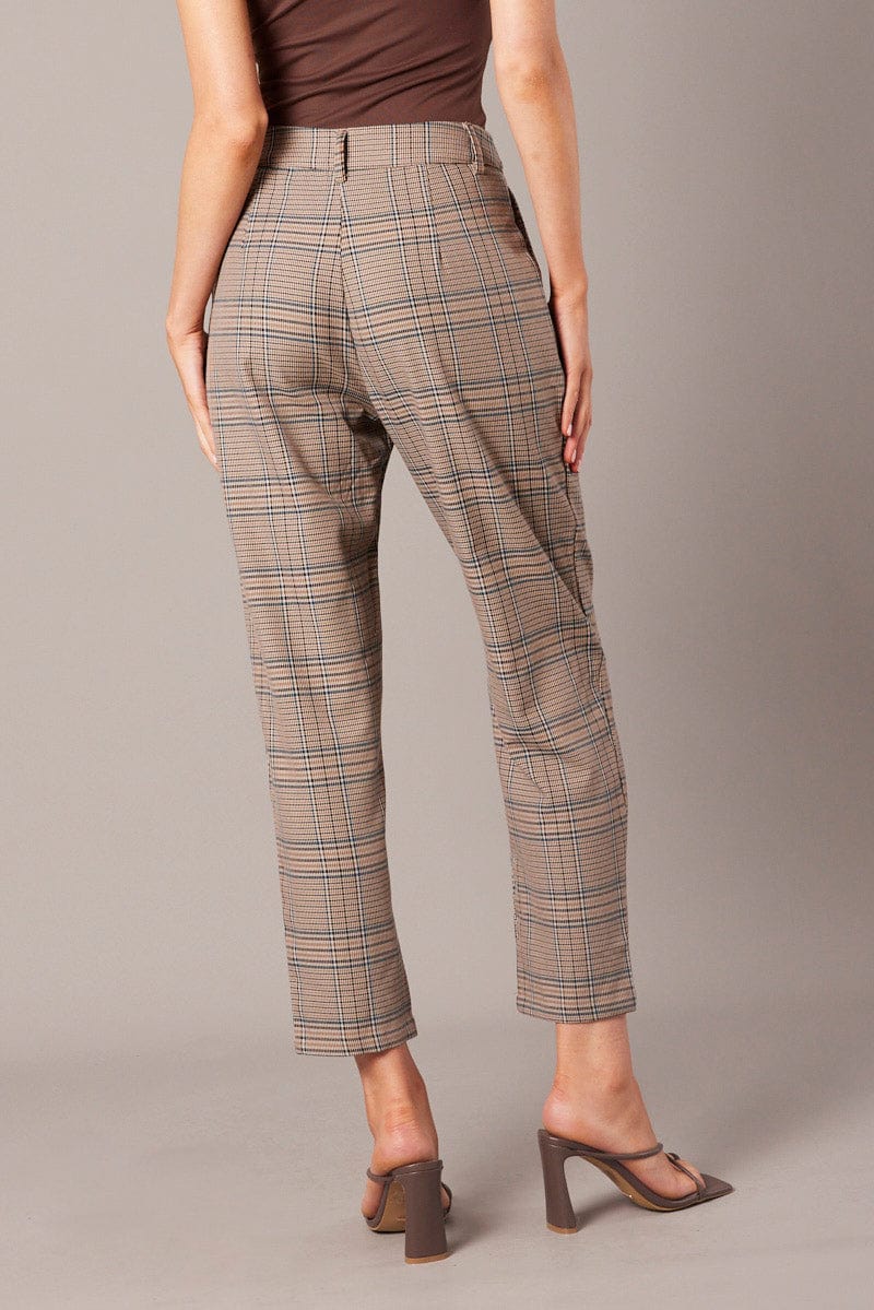 Blue Check Tapered Pants High Rise