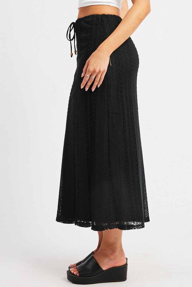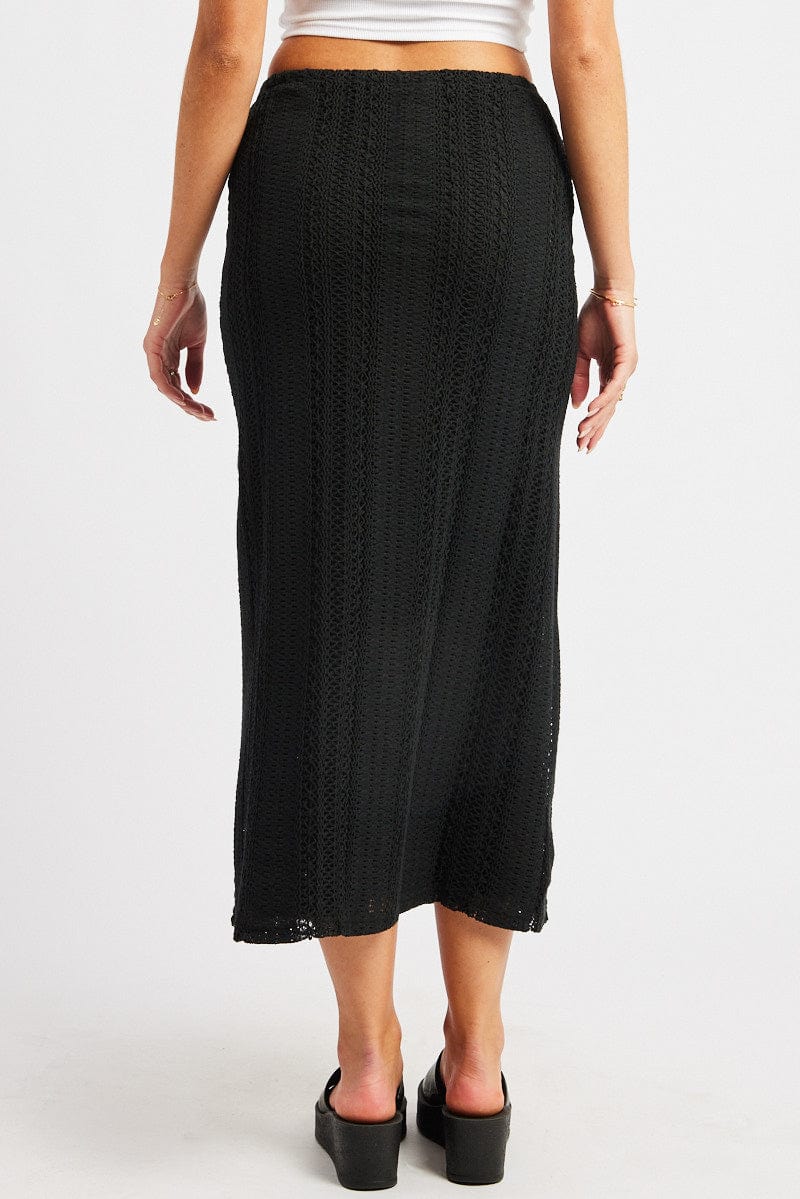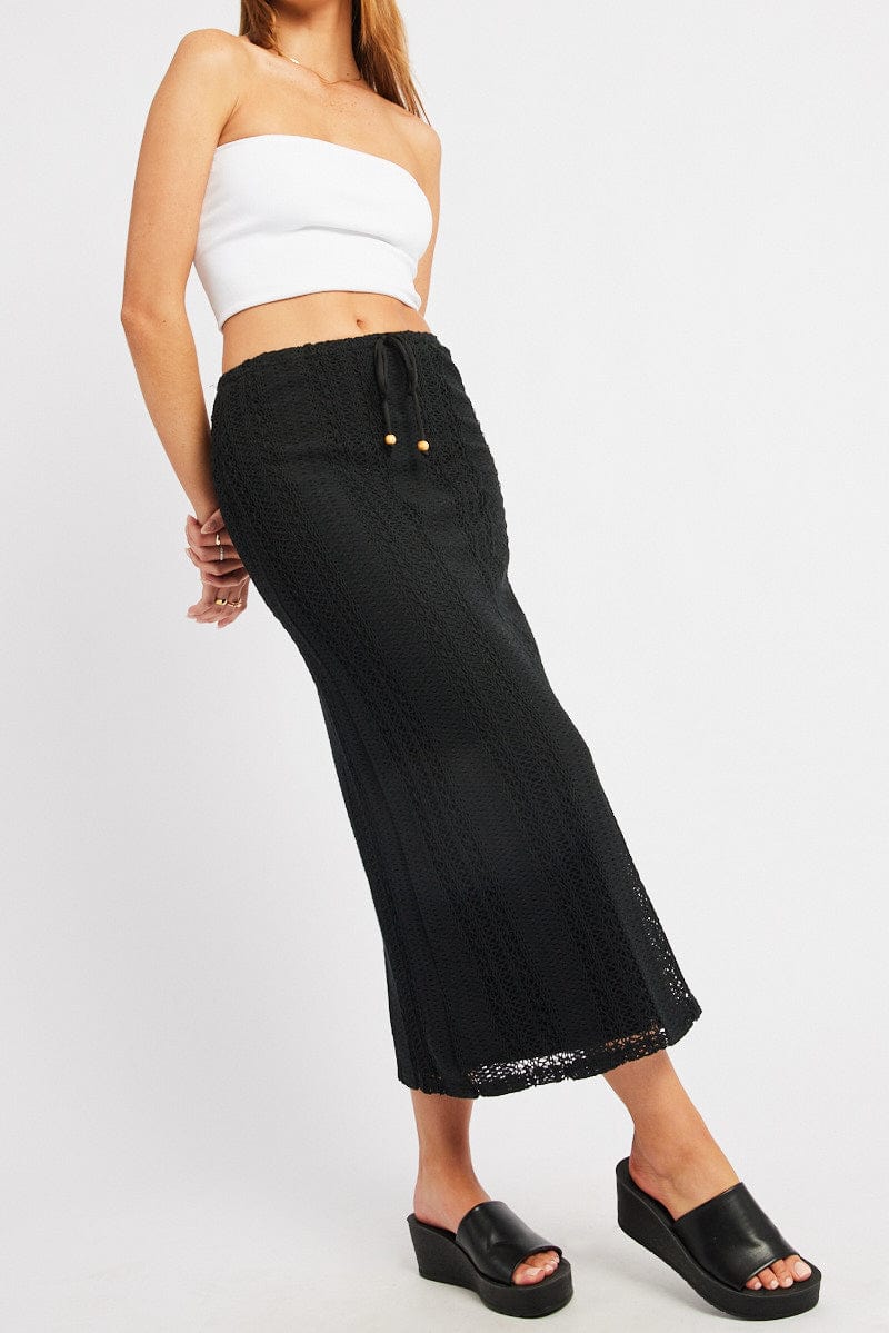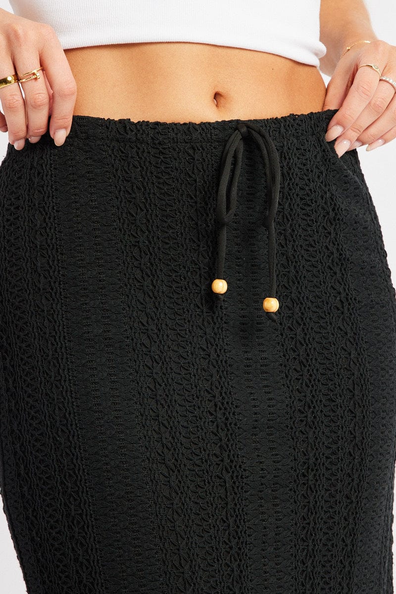 Black Crochet Maxi Skirt High Rise Relaxed Lined