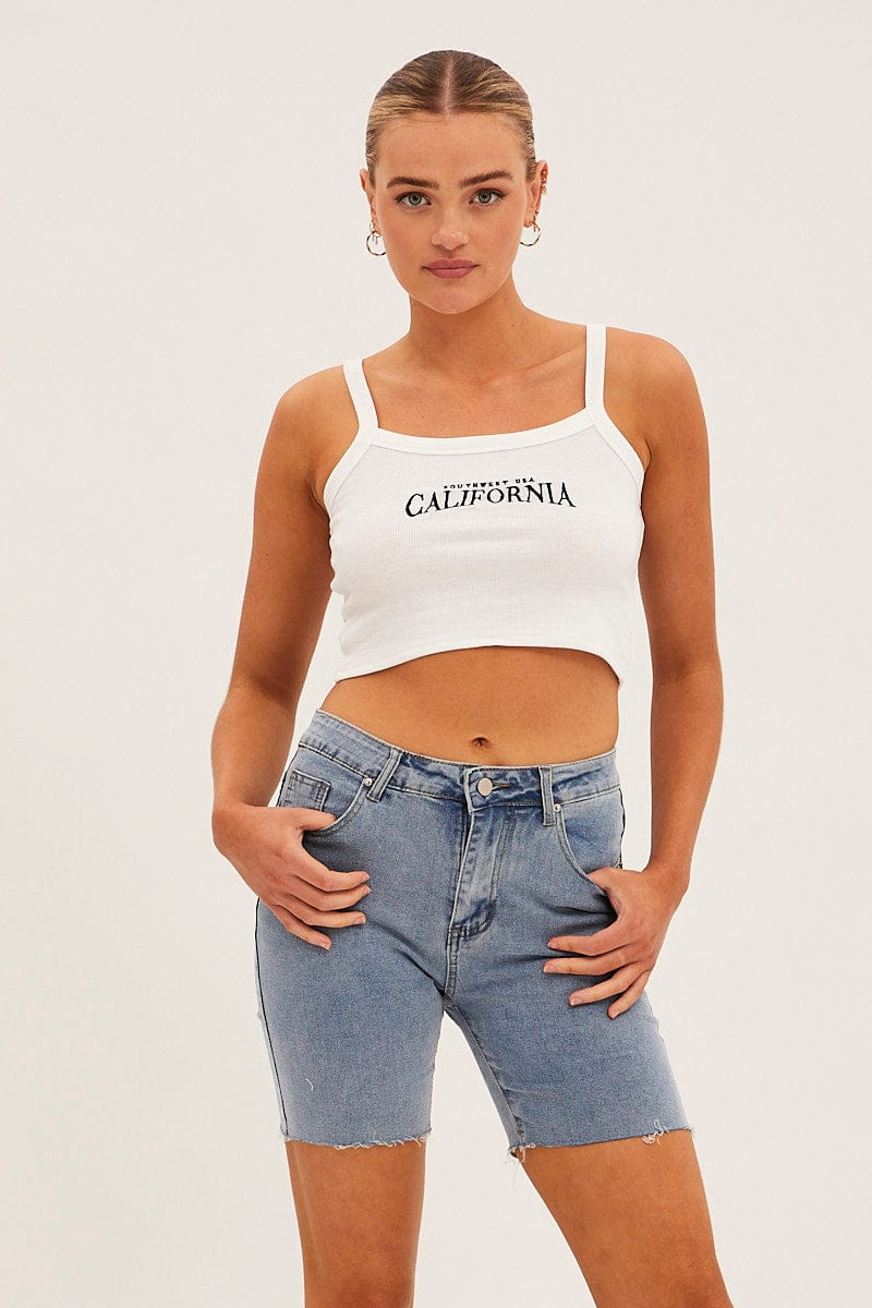 White Relaxed Denim Shorts High Rise Side Slit