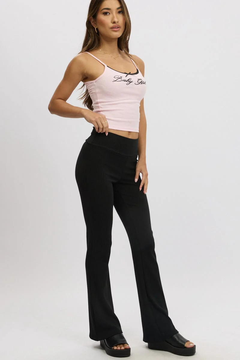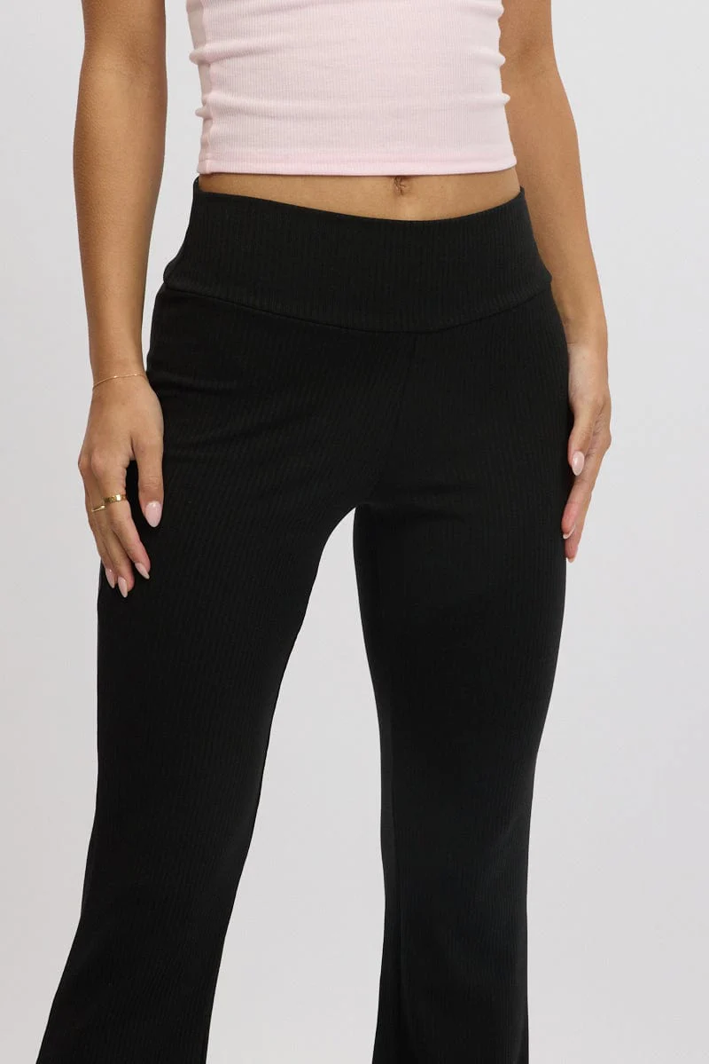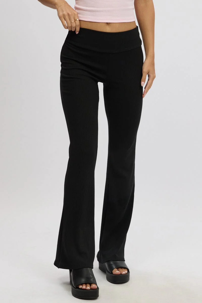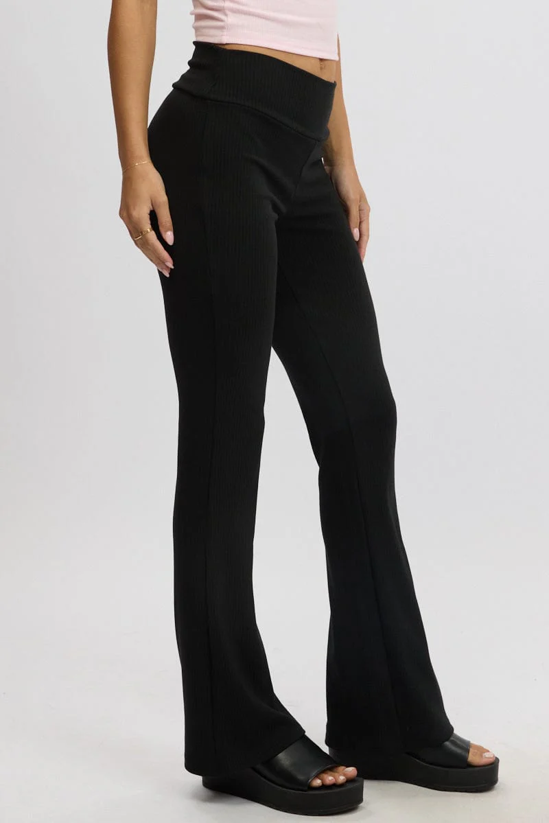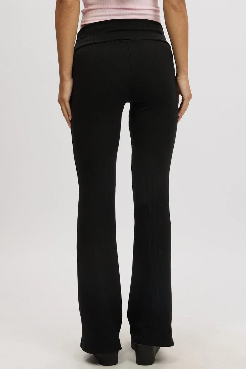 Black Fold Back Flare Leg Pants