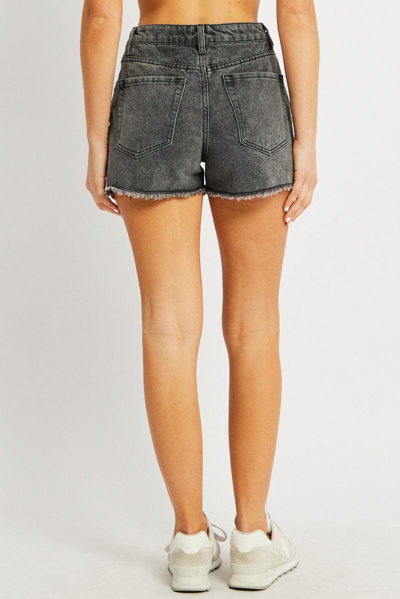Grey Relaxed Denim Short Mid Rise