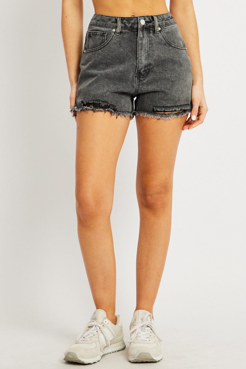 Denim Ripped Denim Short Mid Rise