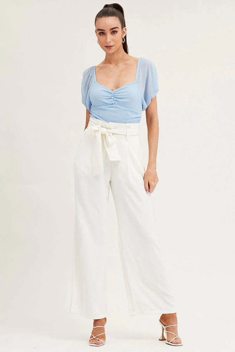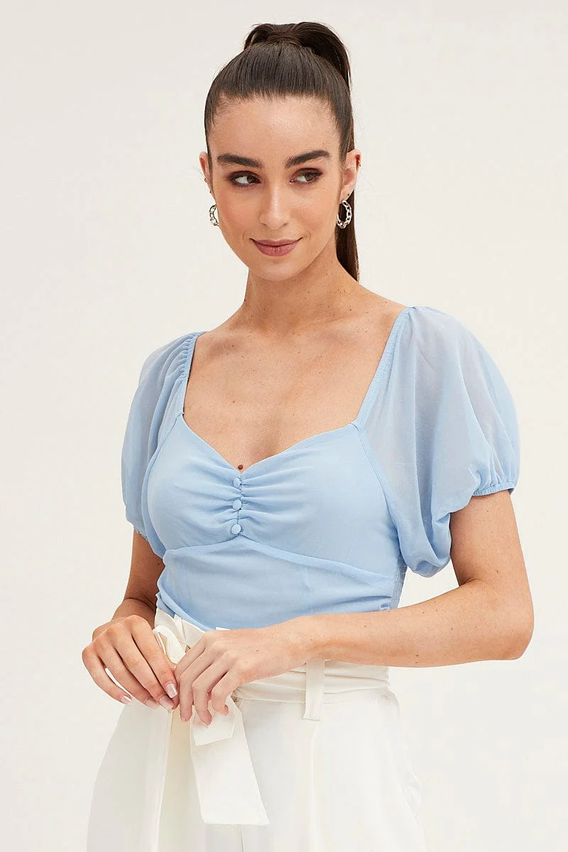 Blue Bodysuit Top Short Sleeve Sweetheart