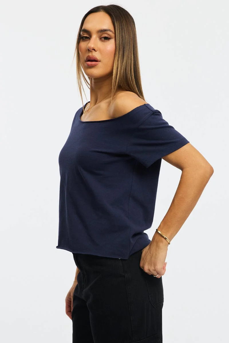Blue Off Shoulder Tee Short Sleeve