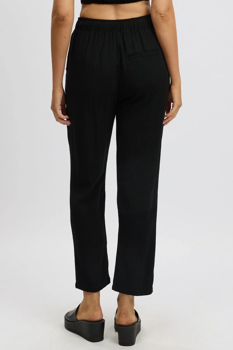 Black Tapered Pants Elasticated Waist