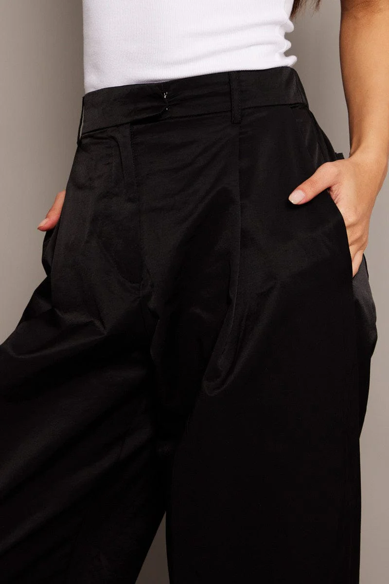 Black Wide Leg Pants Pleated Front