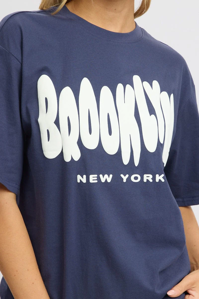 Blue Graphic Tee Short Sleeve